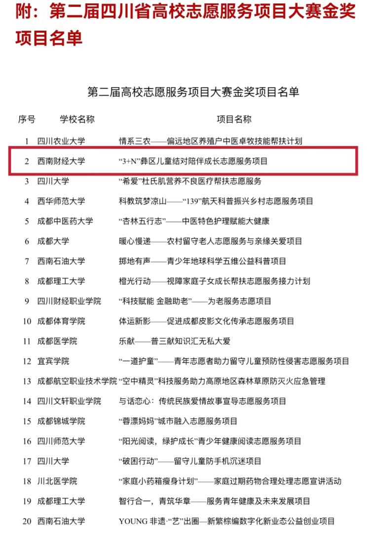 大赛以“青春志愿行 建功新时代”为主题,由共青团四川省委、四川省委教育工委、四川省文明办、民政厅、四川省科协联合主办,是全省高校青年志愿服务的“最高盛会”。大赛中,必赢代表队表现出色,“3+N”彝区儿童陪伴成长志愿服务项目斩获金奖,“茶啵啵-面向直过民族的数字化乡村振兴志愿服务”等2个项目荣获银奖,“以爱之名,与家同行”计划生育特殊家庭关爱项目等2个项目获得铜奖。