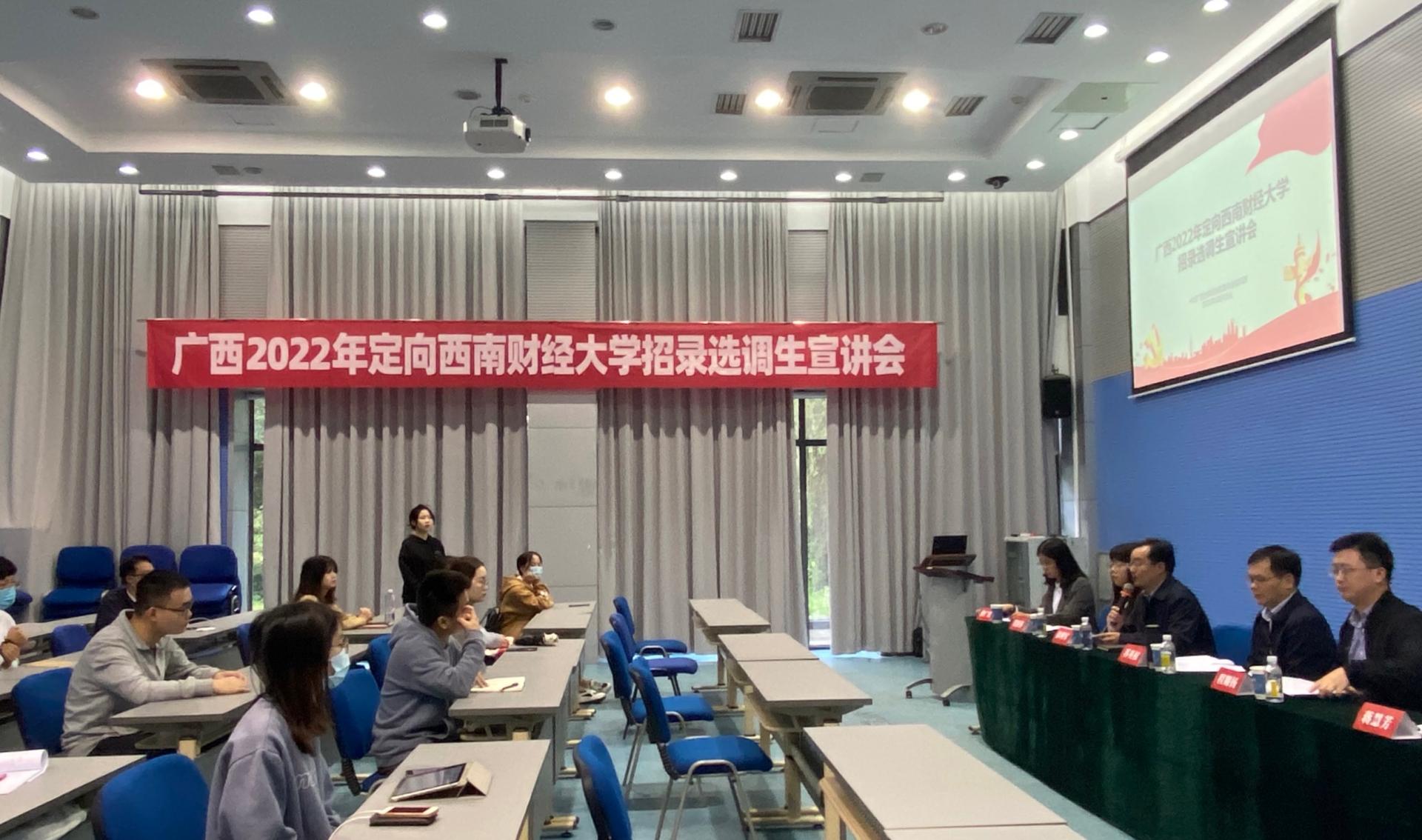 随后,宣讲团在学生活动中心视频会议厅举行了宣讲会。苏英权从区位条件、生态环境、政治生态、发展政策和发展前景五个方面对广西的基本情况进行了详细介绍。校友代表分享了广西选调生招录情况及职业发展的心路历程和心得体会。