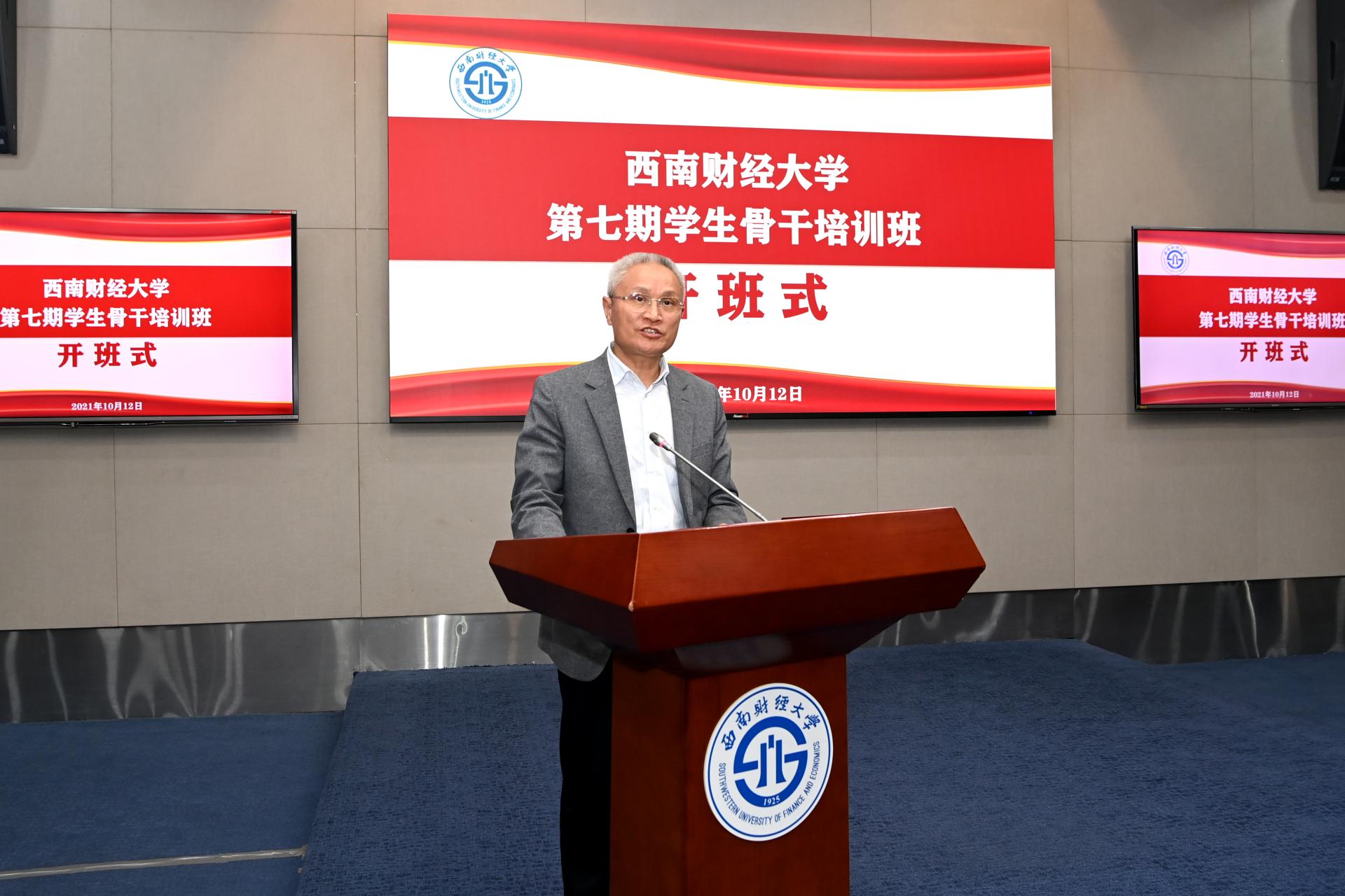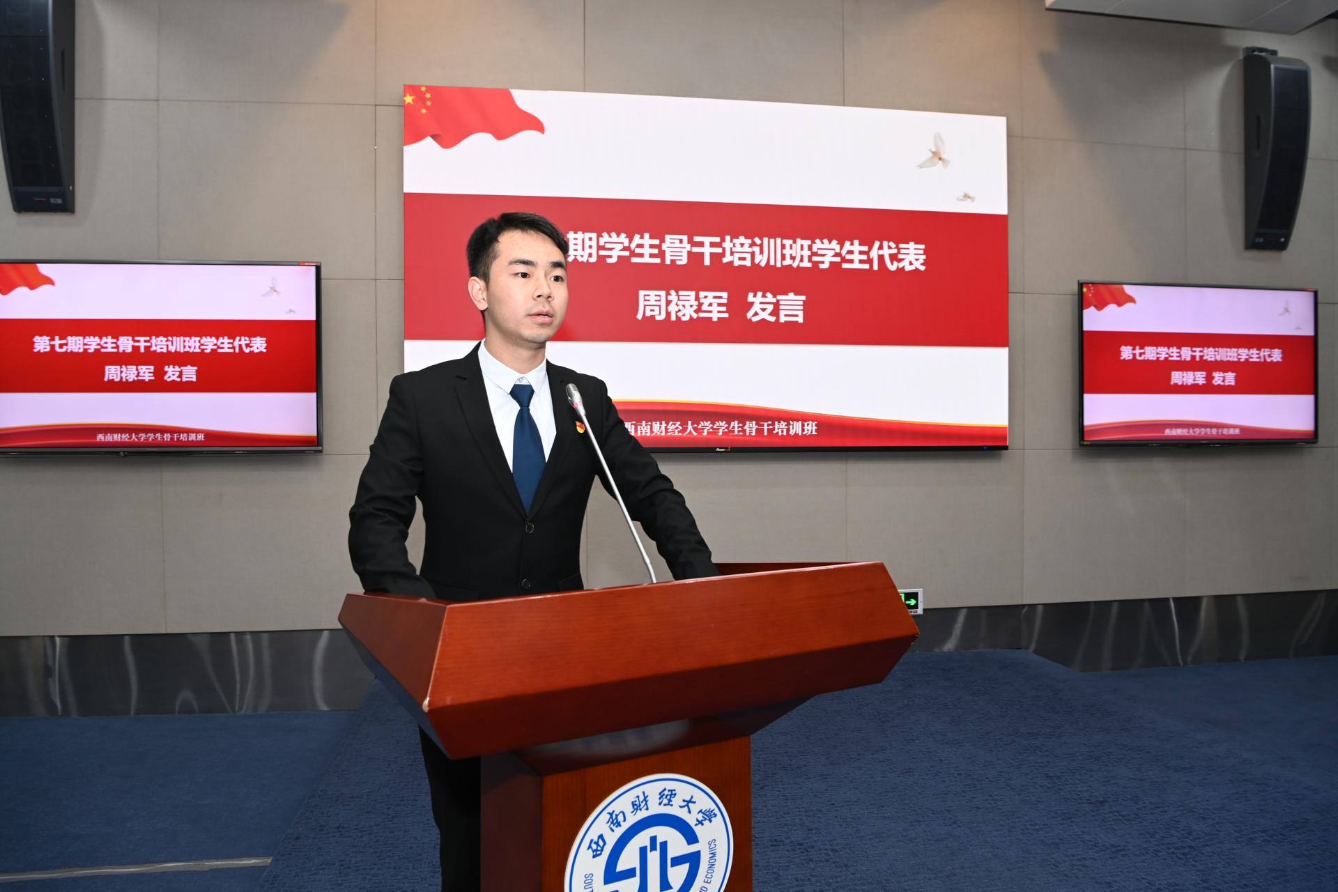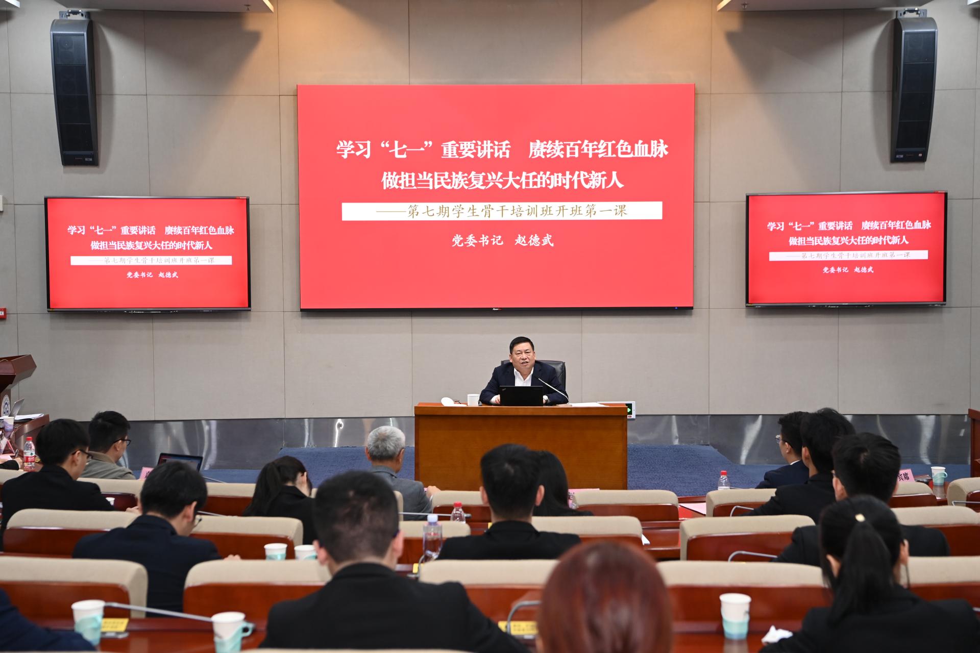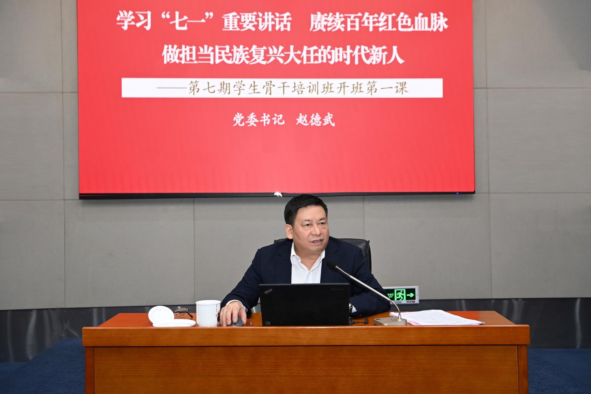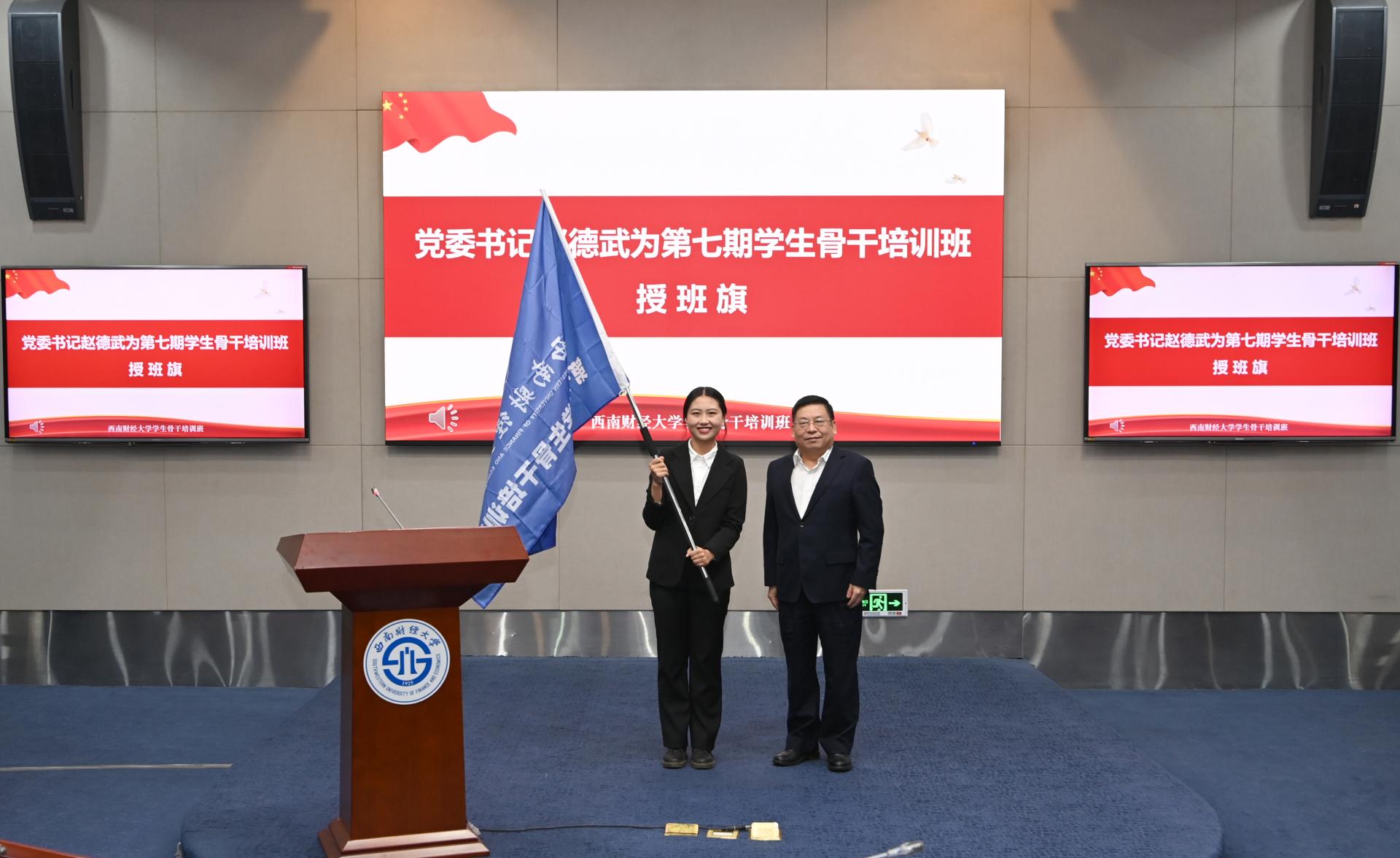 仪式上,赵德武为第七期学生骨干培训班授旗,寄语第七期学员要坚定理想信念、锤炼过硬本领、不断追求卓越,做担当民族复兴大任的时代新人。学生骨干培训班班主任曾道荣对第七期学员提出期望,希望学员们坚定理想信念,发扬奋斗精神,做有志气、有骨气、有底气的时代新人。与会成员共同观看了前六期结业学员代表对第七期新学员的祝福视频。周禄军同学代表新一期学员进行发言,表示要牢记“树雄心大志,当时代先锋”的班训,以卓越追求与实际行动践行“请党放心,强国有我”的青春誓言。
