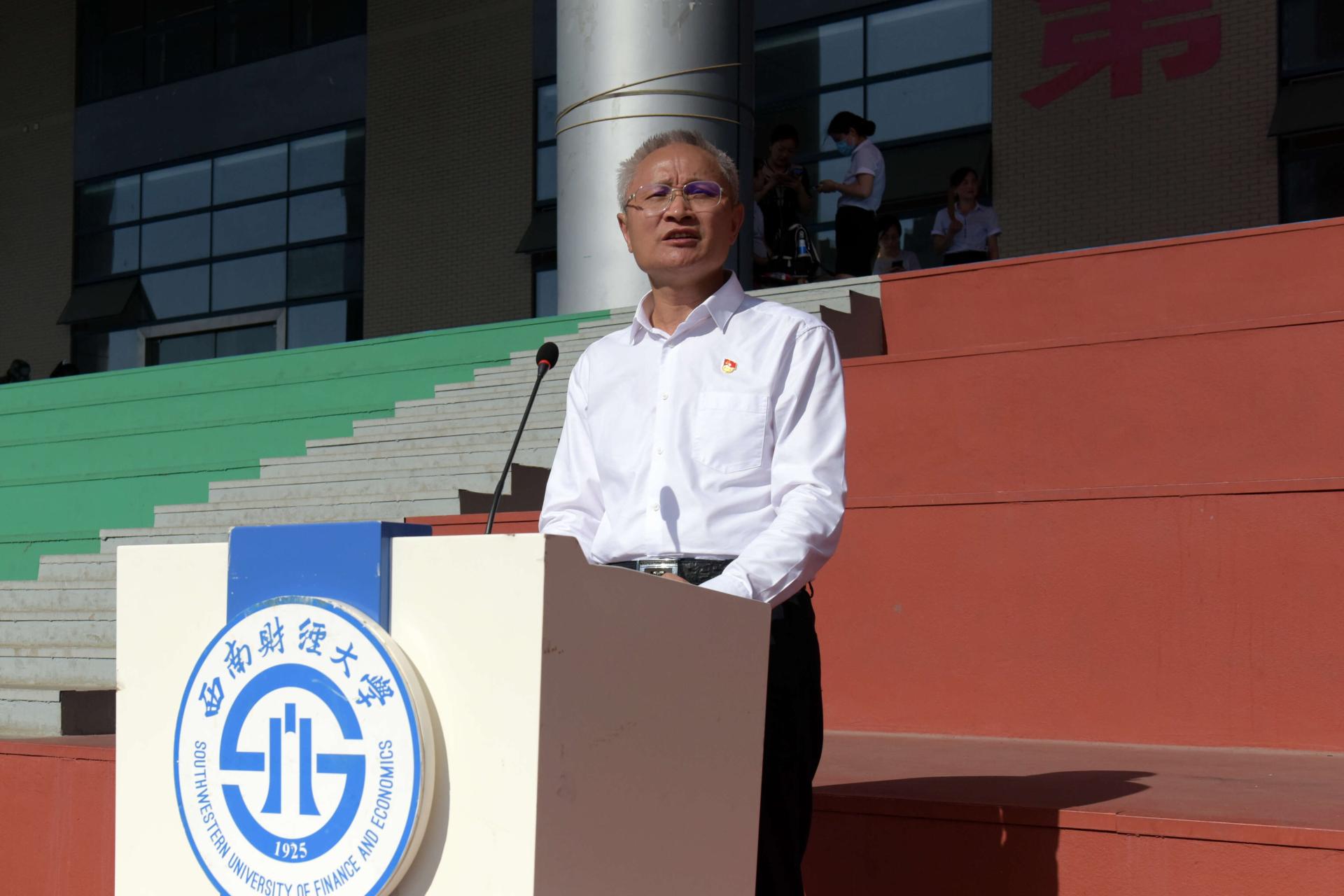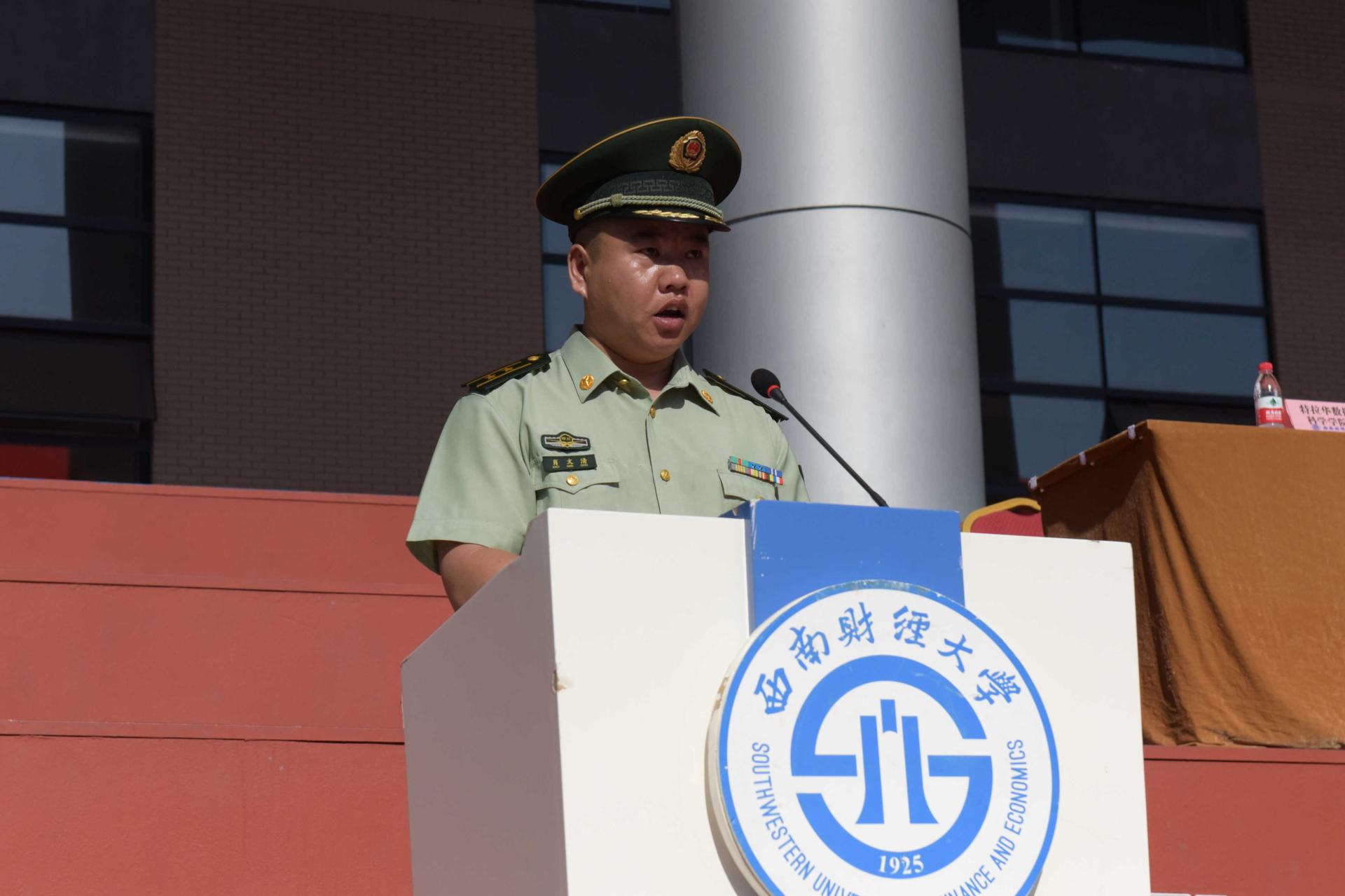 曾道荣在总结讲话中,首先代表学校军训工作领导小组向为军训付出辛勤汗水的全体教官、指导员、带队老师和保障服务人员表示感谢,向顺利完成军训任务的全体同学表示祝贺。他指出,学校党委坚持以习近平新时代中国特色社会主义思想为指导,深入贯彻落实习近平强军思想和习近平总书记关于教育的重要论述,突出立德树人根本任务和强军目标要求,抓实抓好学生军训大课,着力增强学生国防观念、国家安全意识和忧患危机意识,涵养爱党爱国爱军情怀、提升综合国防素质。2020级本科学生军训是在热烈庆祝中国共产党成立100周年、深入学习贯彻习近平总书记“七一”重要讲话的时刻开展的具有特殊意义的一次军训,展现出不一样的精彩。武警成都支队的教官们精心组织,认真施训,展现了新时代革命军人“听党指挥,能打胜仗,作风优良”的光辉形象,潜移默化地感染和教育引导了同学们。全体参训同学用拼搏和汗水描绘了精彩篇章,进一步了坚定理想信念、涵养报国之志,夯实军事素养、磨练意志品质,增强国防观念、赓续红色血脉,训出了家国情怀、训出了奋斗精神、训出了责任担当。希望同学们把军训的丰硕成果作为今后勤奋学习和健康生活的坚实基础,在担当中历练,在尽责中成长,学党史、强信念、跟党走,以“强国有我”的自觉奋进新征程,不负时代、不负韶华、不负党和人民的期望,让青春在爱党爱国爱民的不懈奋斗中绽放绚丽之花!