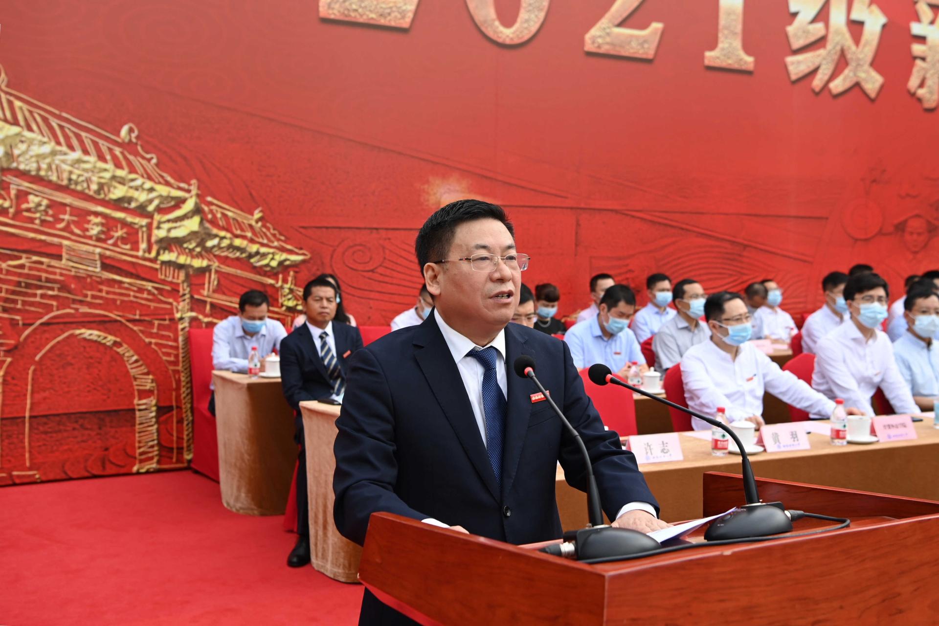 赵德武在主持典礼时殷切寄语新生。他深情讲到,百年党史恢弘巨著,教育事业是光辉篇章,西南财大是精彩一页。建校96年来,从黄浦江畔到浣花溪边,从奠基光华到创业柳林,学校始终与国家民族共命运,始终与时代发展同进步,展现了中国高等教育发展的世纪变迁,绘就了必赢人团结奋斗、抢抓机遇、创新发展、追求卓越的壮丽画卷。赵德武指出,当代青年是与新时代同向同行、共同前进的一代,生逢盛世,肩负重任。新时代必赢青年经历了国庆七十周年、建党百年等大庆大典的洗礼,经受了脱贫攻坚、疫情防控等大战大考的磨砺,是平视世界的一代。他期待2021级必赢学子在宝贵的大学时光里,不负韶华、不负时代,在广阔的必赢舞台上敢于有梦、勇于追梦、勤于圆梦。赵德武对2021级新生提出三点希望。要坚定理想信念,从党史学习中激发信仰、汲取力量,坚定“四个自信”,不断增强做中国人的志气、骨气、底气,树立为祖国为人民永久奋斗、赤诚奉献的坚定理想。要勇于创新创造,牢记“国之大者”,服务国家急需,保持锐意创新的勇气、敢为人先的锐气、蓬勃向上的朝气,让创新创造成为青春远航的动力、青春搏击的能量。要矢志砥砺奋斗,勤学善思、明辨笃行,苦练本领、增长才干,在攀登知识高峰中追求卓越,在投身社会实践中锤炼品格,努力成为德智体美劳全面发展的社会主义建设者和接班人!