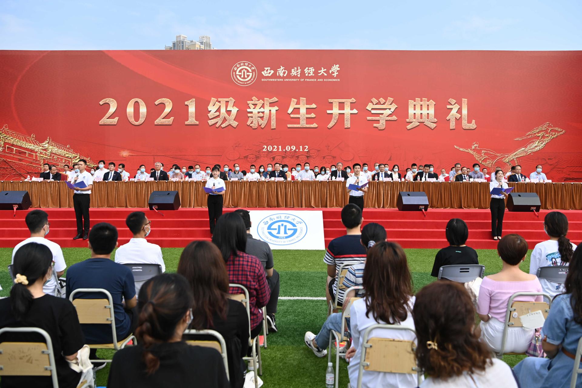 学校党委书记赵德武,党委副书记、校长卓志,党委常委、常务副校长彭龙,党委副书记马骁、曾道荣,党委副书记、纪委书记范卫宏,党委常委、副校长尹庆双、史代敏、张邦富、李永强在柳林校区出席典礼,党委常委、副校长欧兵在光华校区出席典礼,与各学院(中心)、有关职能部门负责人、教师代表、校友代表以及2021级全体新生一道见证这一庄严神圣的时刻。赵德武主持典礼,卓志在典礼上讲话。