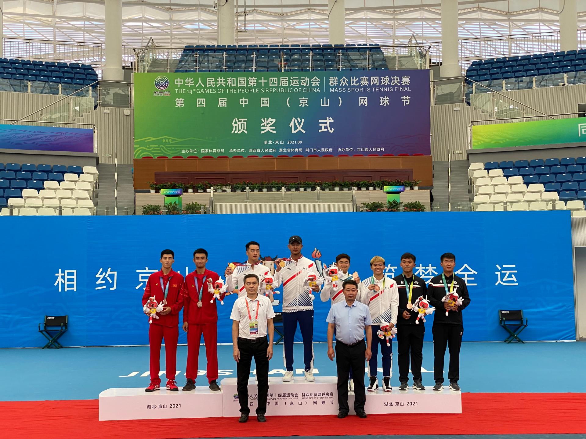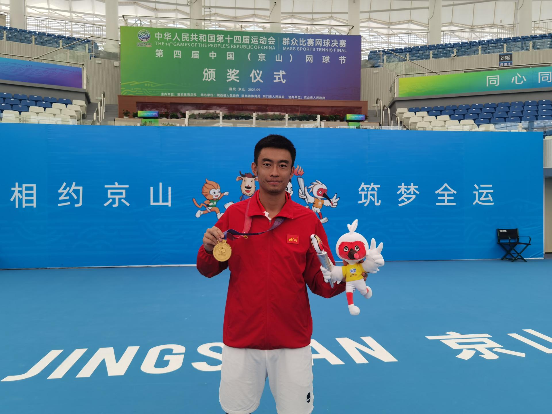 本届全运会根据习近平总书记“人民至上、全民全运”指示精神,首次设立群众体育比赛网球竞赛项目。来自全国25个省区市和1个行业体协共26支代表队、近500名运动员、教练员、技术官员参加了比赛。在男子团体决赛中,施泓宇老师代表四川队出战,充分发扬奥林匹克精神和中华体育精神,顶住压力顽强拼搏,发挥出高超的竞技水平,最终四川队以2: 1击败广东队,拿到在本届全运会群众项目网球比赛的第一块金牌。在随后进行的男子双打及男子单打比赛中,施泓宇过关斩将,连续五日作战,历经五场单打、四场双打对决,相继获得男子双打银牌及男子单打第五名。