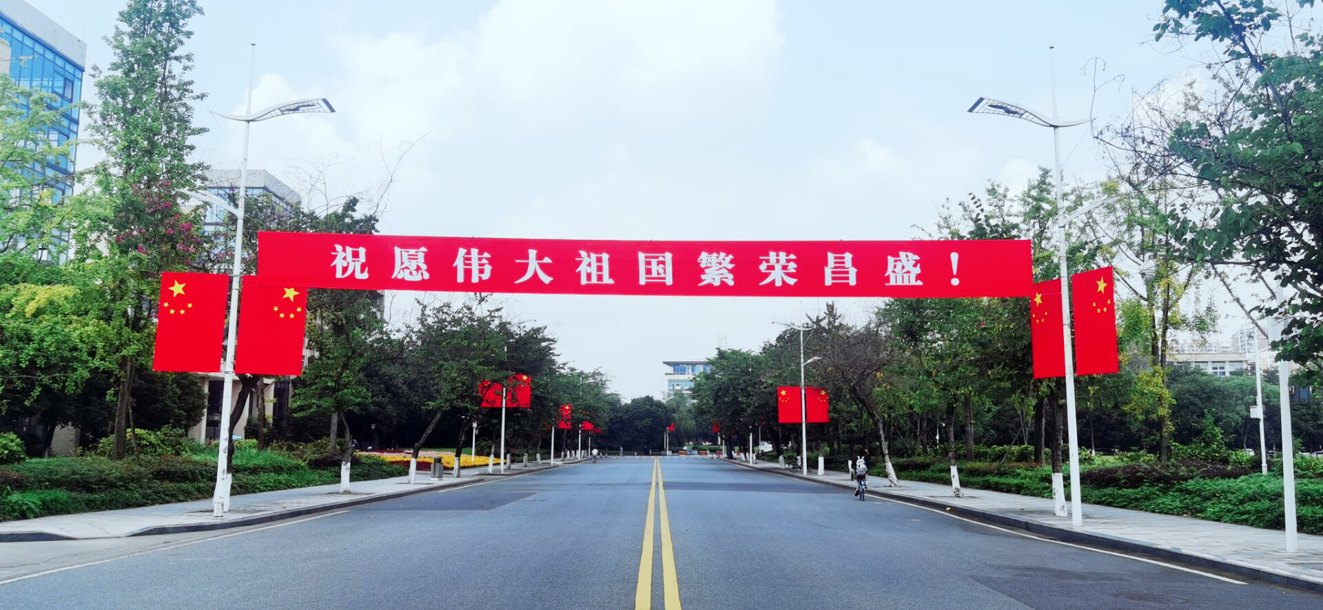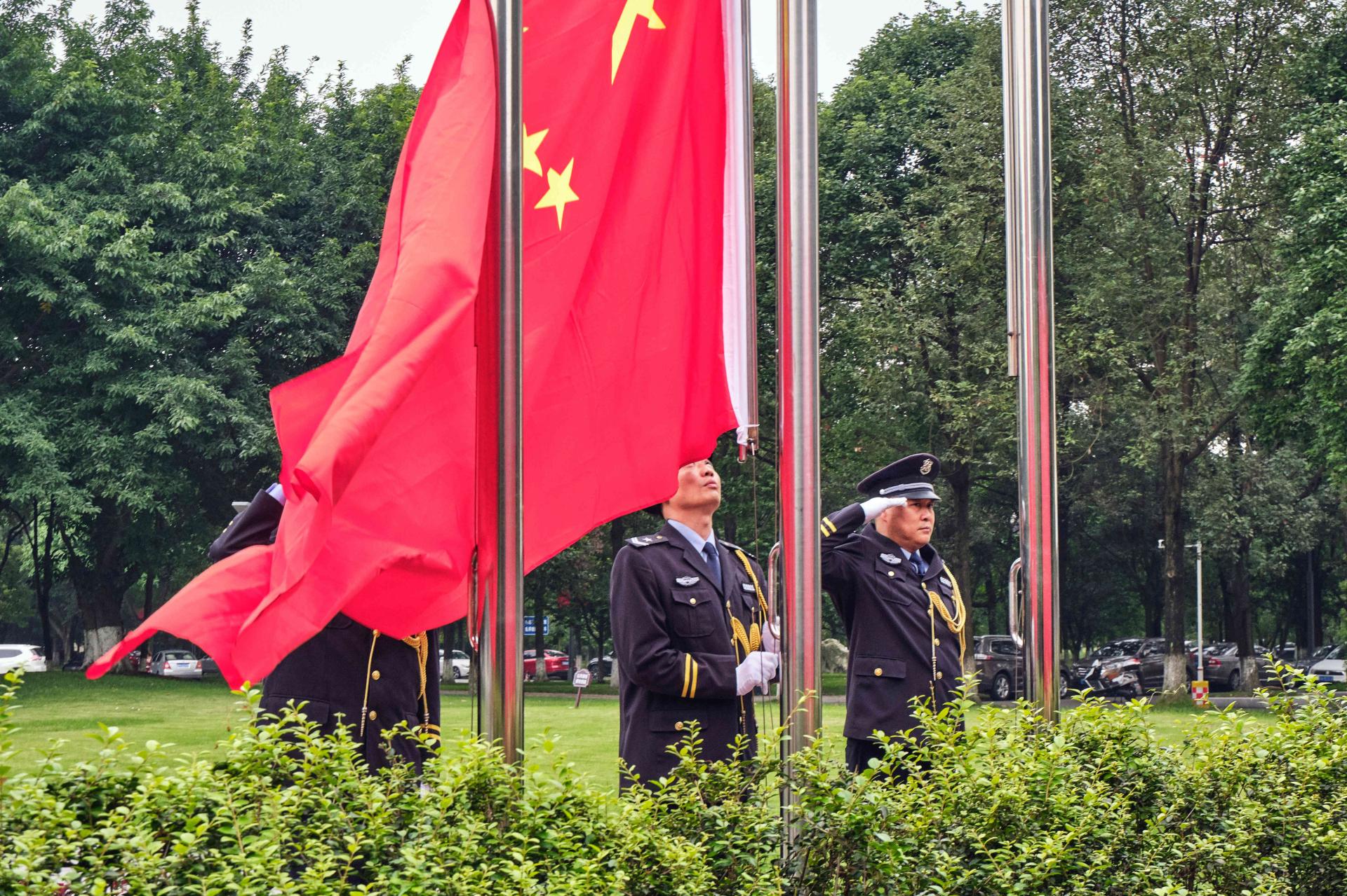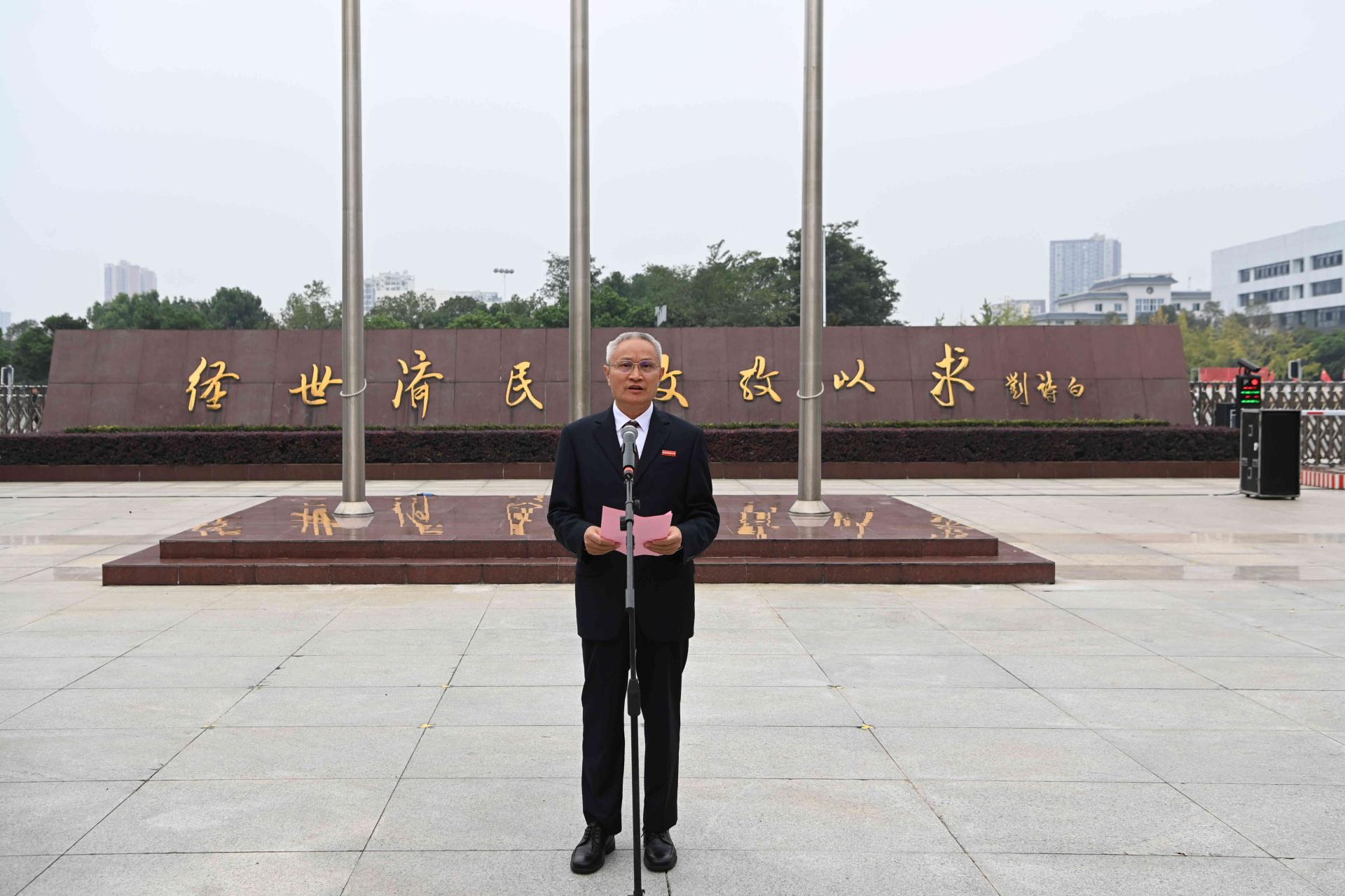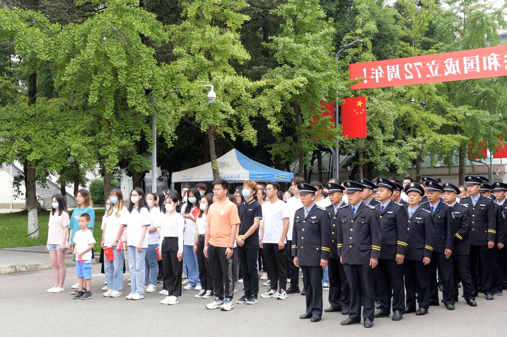 升国旗仪式上,曾道荣、欧兵分别发表热情洋溢的讲话,向新中国72岁华诞致以深情祝福,向为民族独立、人民幸福建立不朽功勋的革命先烈表示深切怀念,向全校师生员工致以节日的祝贺。他们深入回顾了新中国成立72年来中国共产党团结带领全国各族人民取得的举世瞩目的伟大成就,深情祝愿伟大祖国繁荣富强、人民幸福安康。他们指出,爱国在心,强国在志,报国在行。爱国之心,是再朴素不过的情感;强国之志,是再应该不过的抱负;报国之行,是再自然不过的选择。他们希望,同学们要立大志、明大德、成大才、担大任,自觉用习近平新时代中国特色社会主义思想武装头脑,深刻认识中国共产党为什么能、马克思主义为什么行、中国特色社会主义为什么好,自觉增强“请党放心、强国有我”的使命担当,将爱党、爱国、爱社会主义的深厚情感落实到奋斗实践中,争做有志气有骨气有底气的时代新人,以青春之我创造青春之国家、青春之民族,让青春之花在为祖国、为民族、为人民、为人类的不懈奋斗中绚丽绽放。