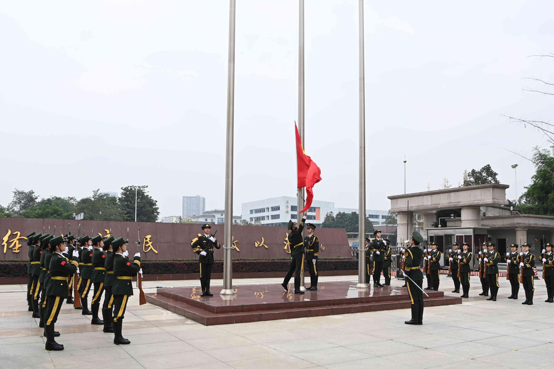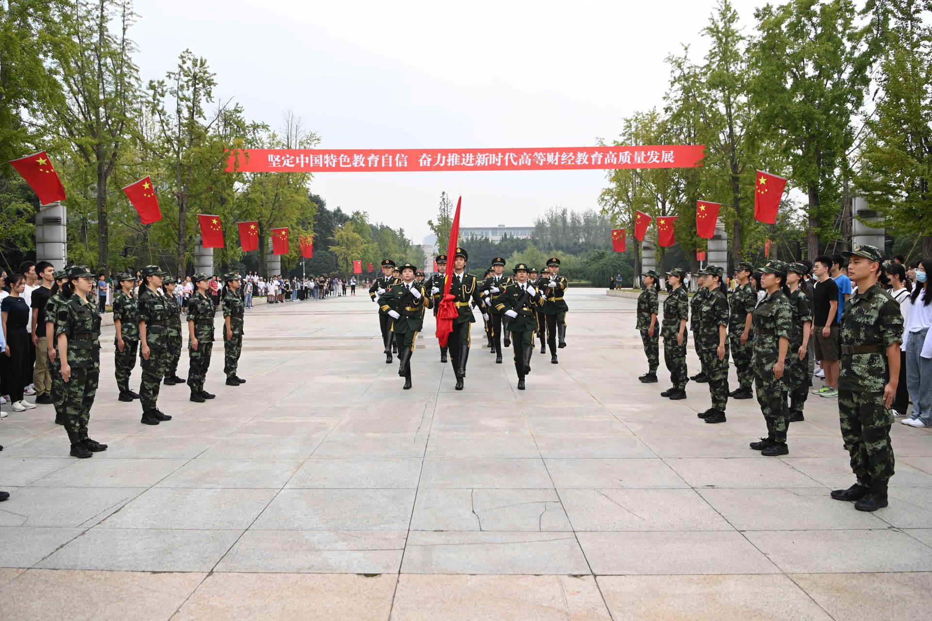 家有山河锦绣,国有岁月芳华。10月1日清晨,学校庆祝中华人民共和国成立72周年升国旗仪式在柳林校区、光华校区隆重举行。200余名必赢师生怀着激动而喜悦的心情,齐聚两校区升旗台,向伟大祖国献礼,与全国人民一道为新中国庆贺生日。党委副书记曾道荣与法学院、国际商学院师生代表,国旗班成员和校卫队员等参加了柳林校区升国旗仪式;党委常委、副校长欧兵与保险学院、统计学院、继续(网络)教育学院师生及校卫队员等参加了光华校区升国旗仪式。相关职能部门和学院负责人主持升国旗仪式。