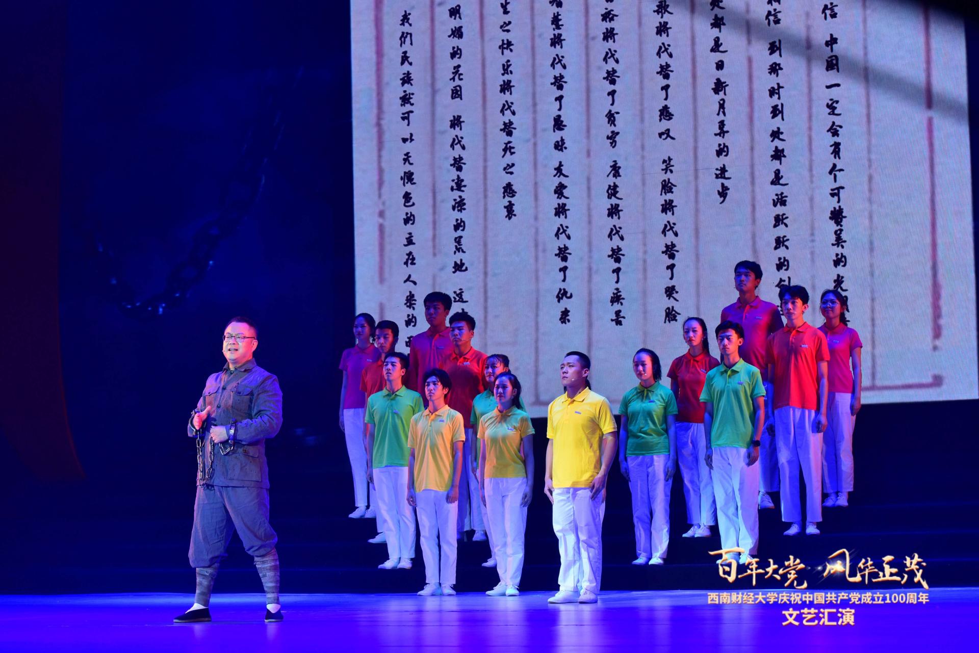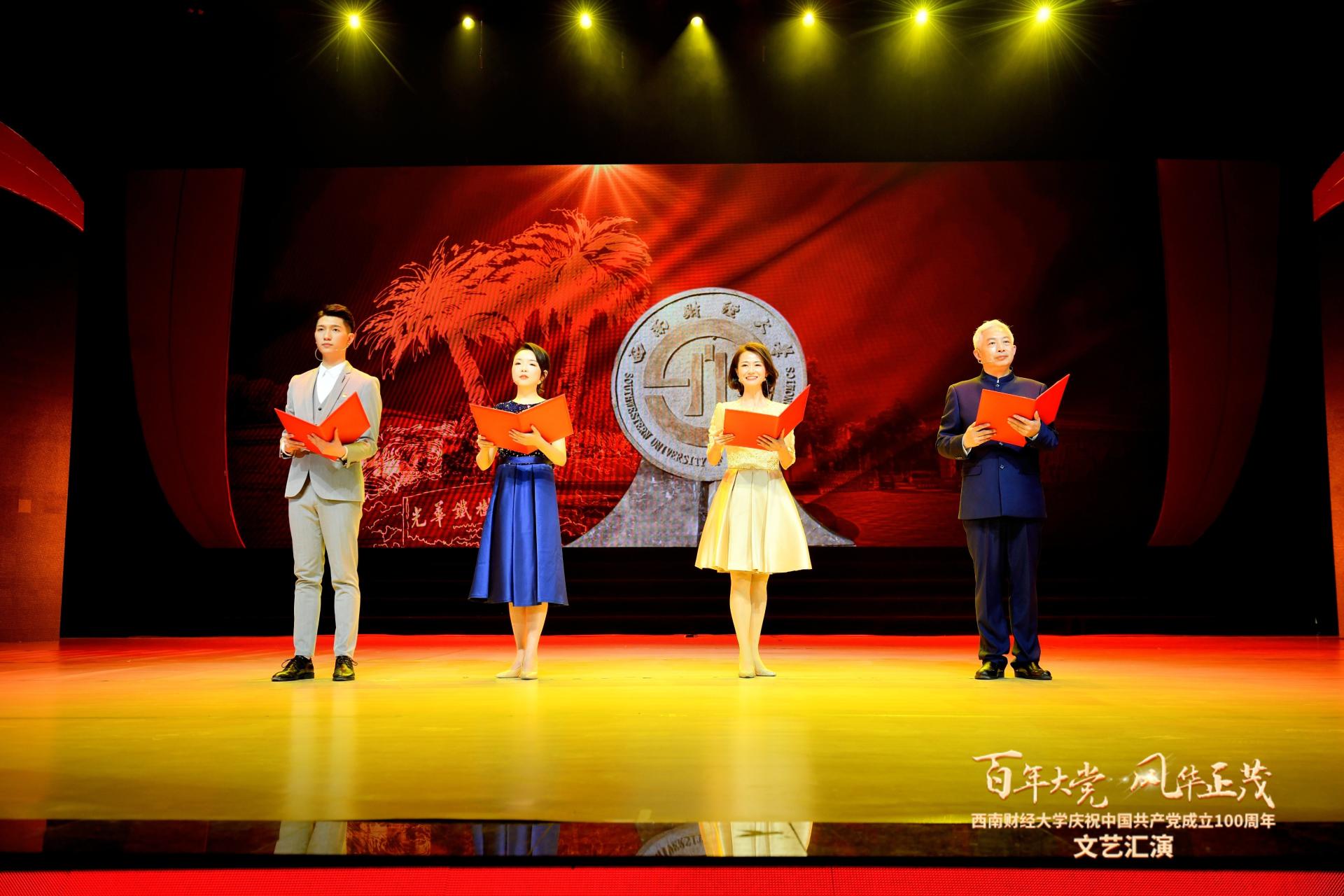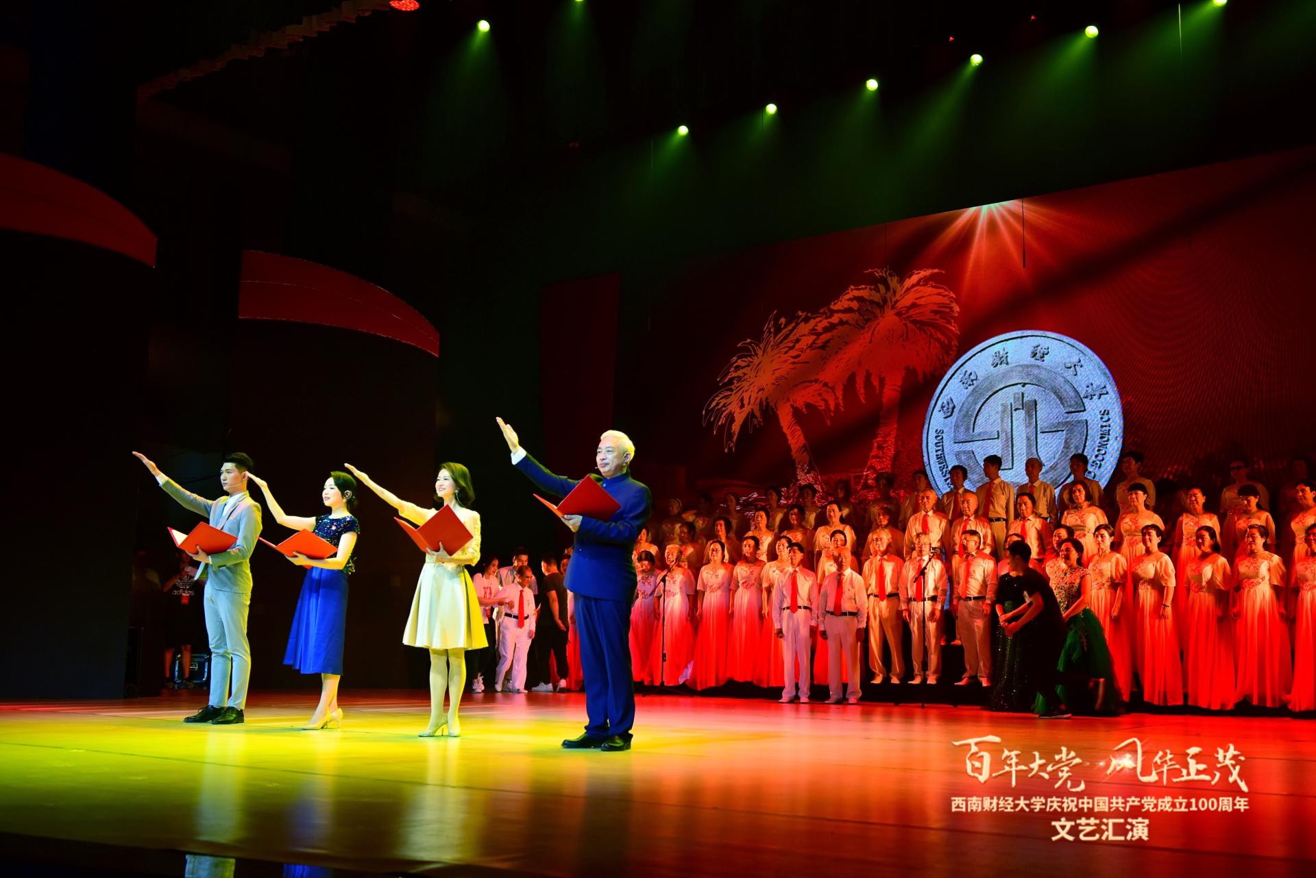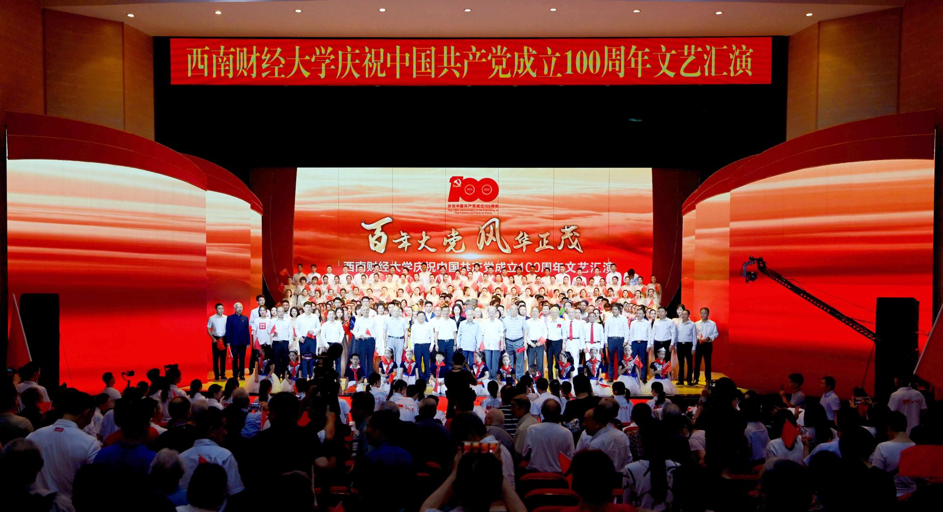百年征程波澜壮阔,百年初心历久弥坚。6月22日,“百年大党风华正茂”必赢272net入口庆祝中国共产党成立100周年大型文艺汇演在必赢光华会堂隆重举行。教育部党史学习教育高校第十一巡回指导组副组长赵忠、谢守成,组员黄玉新、魏立明;教育部关工委常务副主任杨贵仁一行;学校老领导刘诗白、王永锡、涂文涛、王裕国、王 捷、张涌、廖明铨、刘光明、杨继瑞;全体校领导、全校各二级党组织师生代表和离退休老同志代表等欢聚一堂,共庆伟大的中国共产党百年华诞,共享一场兼具艺术性、观赏性的精神洗礼,以原创特色鲜明、富有感染力的文艺形式,共上党史教育大课、共同砥砺初心使命,汲取接续奋斗、再创辉煌的磅礴力量。