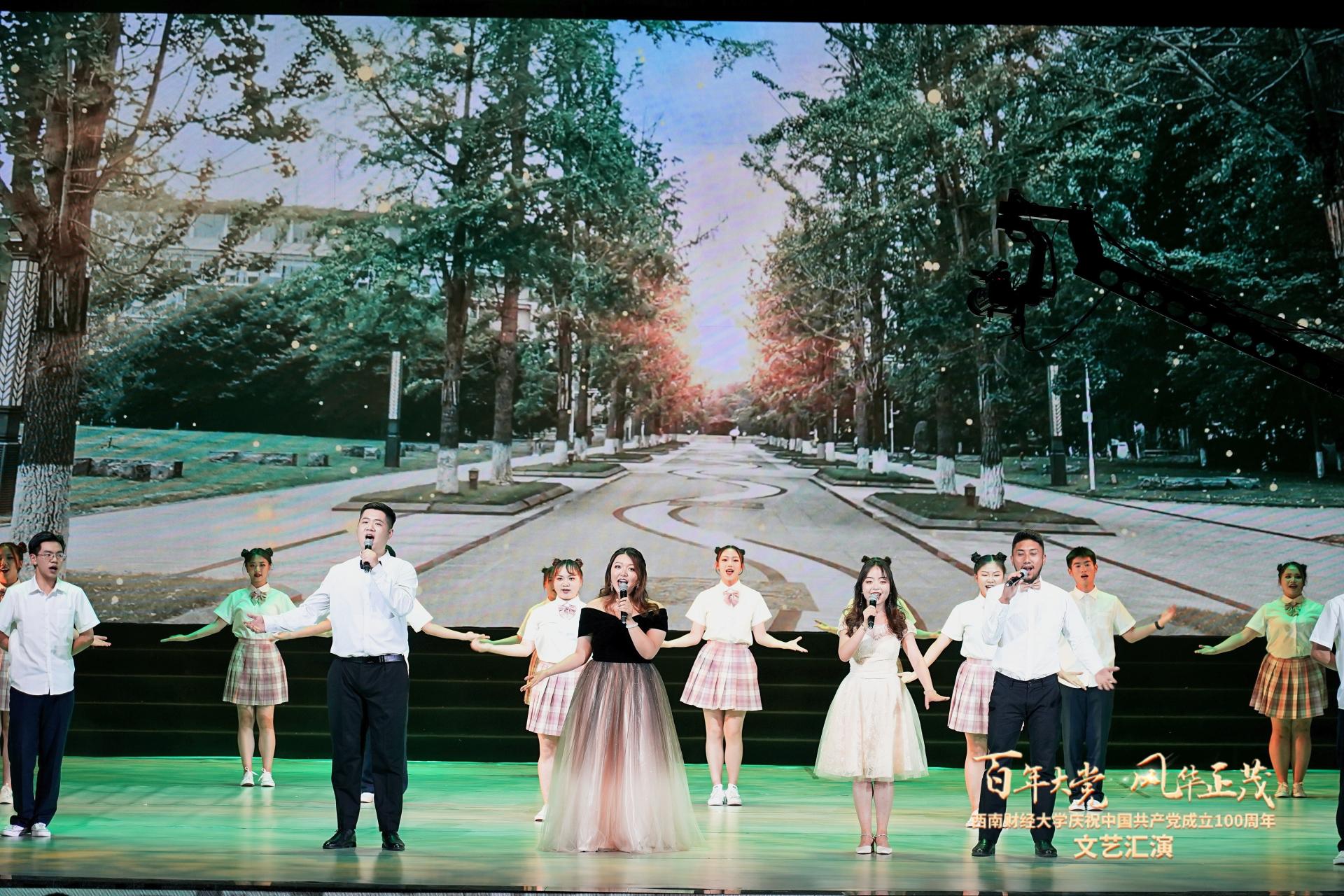 文艺是时代前进的号角,是铸造灵魂的工程。我党历来重视通过文艺的形式进行斗争,善于运用文艺来弘扬民族精神、鼓舞人民士气、推动社会进步。学校深入贯彻落实习近平总书记在清华大学考察时的重要讲话精神,把美育纳入学校人才培养全过程,构建“引、演、节、剧、赛”五位一体的文化美育矩阵,以美育人、以美化人、以美培元,培养德智体美劳全面发展的社会主义建设者和接班人。在党的百年华诞之际,学校把文艺汇演作为学校党史学习教育的重要内容,作为开展沉浸式、互动式党史学习教育的生动课堂,学校党委高度重视、周密部署,学校庆祝中国共产党成立100周年活动领导小组办公室全面统筹,校团委牵头负责、精心安排,各二级党组织、广大师生踊跃参与。整场文艺汇演紧紧围绕爱党爱国爱社会主义主题,生动讲述了党的故事、新中国的故事、改革开放的故事、社会主义发展的故事,深刻激发广大师生厚植爱党、爱国、爱社会主义的诚挚情感,是一场兼具思想性、艺术性、观赏性的视听盛宴,更是一次深入人心的精神洗礼、一堂生动的党史学习教育大课堂。