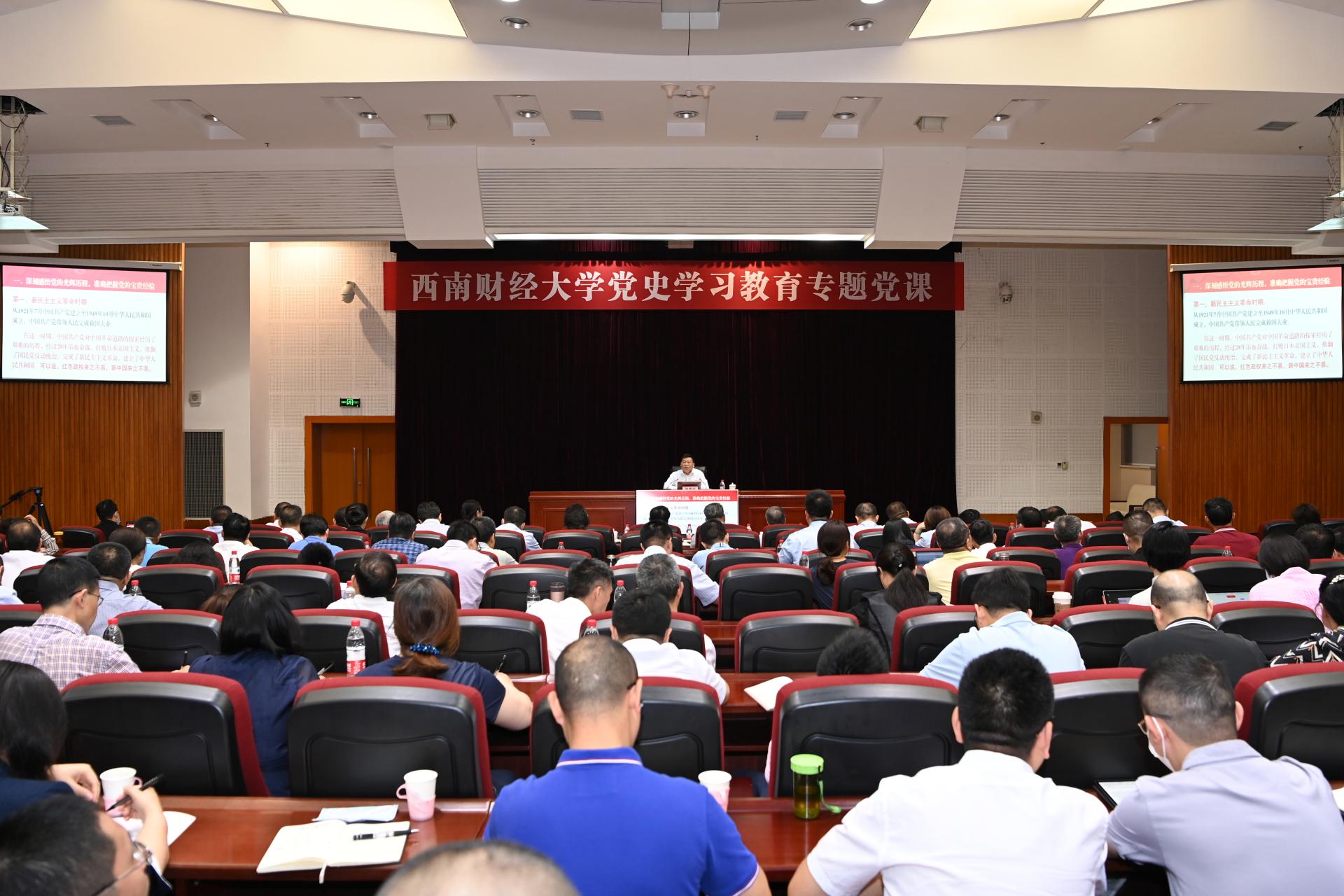 赵德武以《深入学习党的百年历史 坚定中国特色教育自信 奋力推动新时代高等财经教育高质量发展》为题,深刻阐述了党的百年光辉历程和宝贵经验,全面阐释了中国特色教育自信的丰富内涵、内在依据和实践要求,强调要坚定中国特色教育自信、认真贯彻落实党中央关于教育的重大决策部署,奋力推进新时代学校党建思政、人才培养、科研服务、人才队伍、对外开放、治理体系高质量发展。