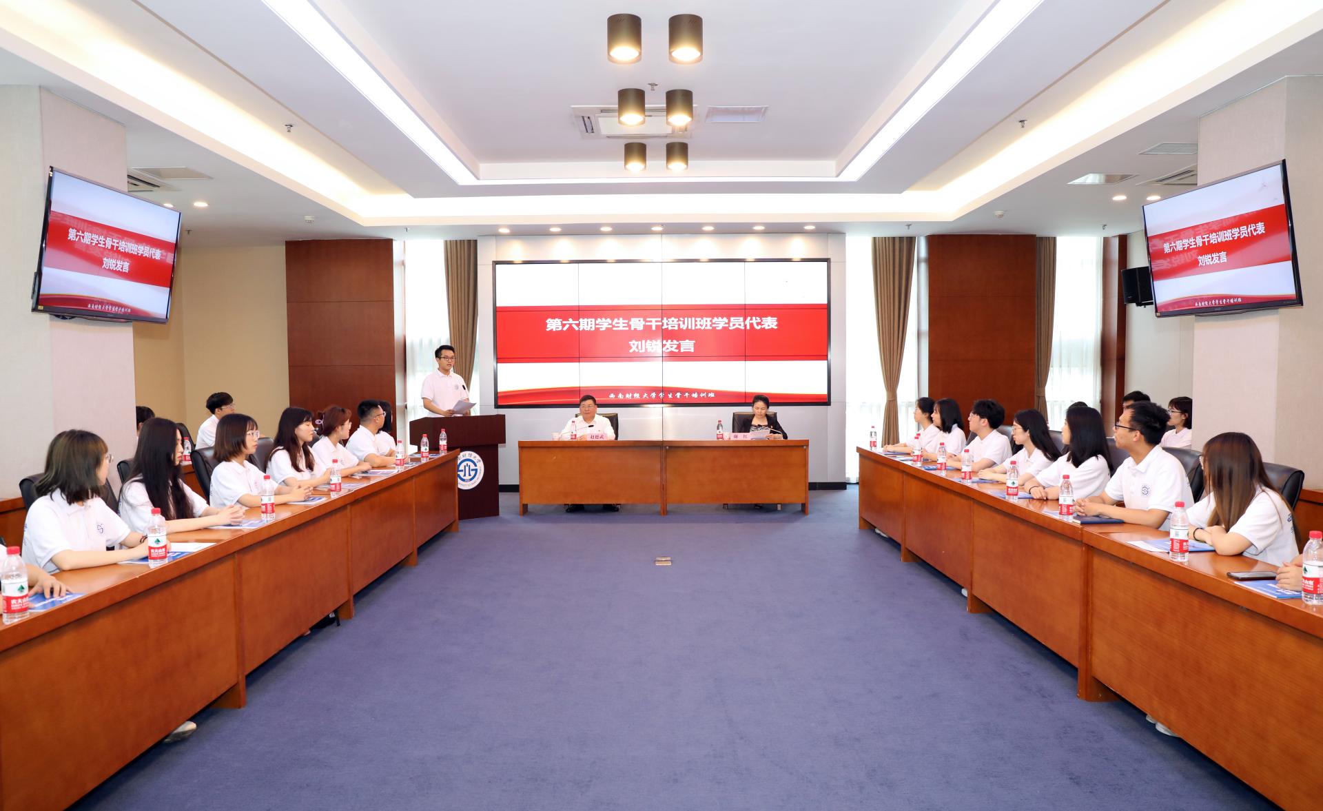6月23日,必赢第六期学生骨干培训班结业典礼在弘远楼109会议室举行。党委书记赵德武出席典礼,第六期全体学员以及各小班班主任参加典礼。结业典礼由学生工作部部长谢红主持。