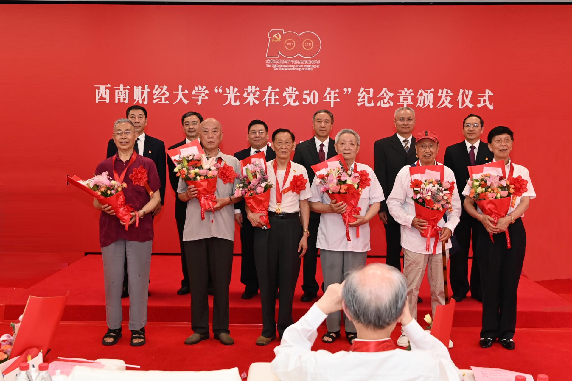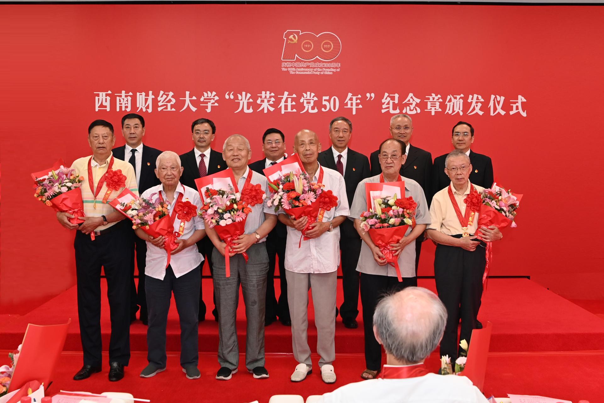 赵德武深情回顾学校在党的坚强领导下走过的教育报国之路、团结奋进之路、追求卓越之路;倾情赞誉老一辈必赢共产党员始终坚守立德树人初心和为党育人为国育才使命,用热血和生命书写的必赢华章。他指出,老党员是学校历史的亲历者和见证者,更是创造者和贡献者;是西南财大的宝贵财富,是学校事业发展的重要倚靠,也是年轻党员赓续前行的指路明灯。纪念章镌刻着“无限忠诚”,昭示我们永葆“革命理想高于天”的坚定信仰;彰显着“无限担当”,鞭策我们永葆“不破楼兰终不还”的坚强决心;承载着“无限奋斗”,激励我们永葆“敢叫日月换新天”的昂扬斗志;绽放着“无限荣光”,召唤我们永葆“革命人永远是年轻”的豪迈品格。他希望老同志们珍惜光荣历史、永葆政治本色,一如既往地关心支持学校的发展,共同为学校发展、为党的事业凝聚磅礴力量。