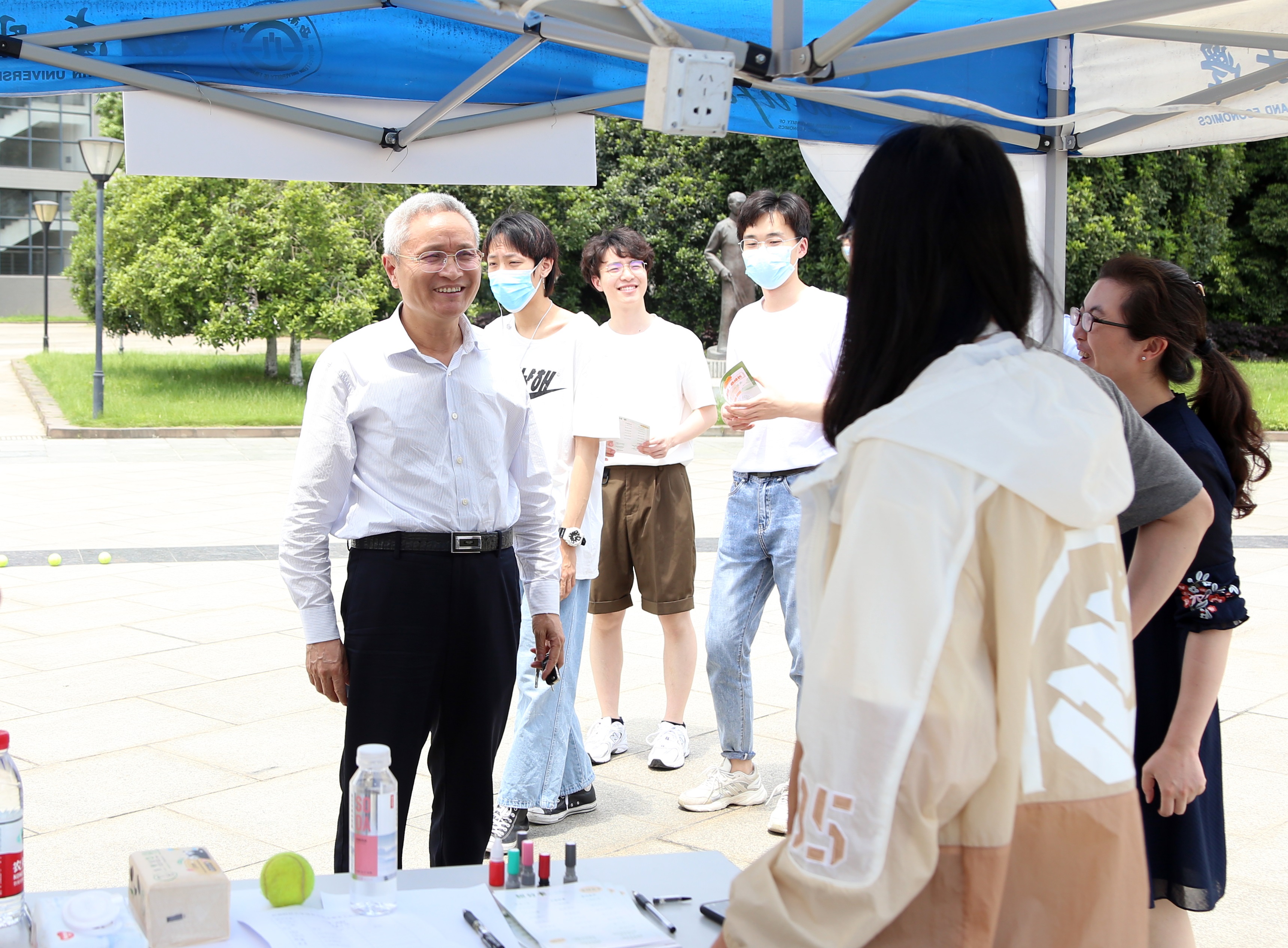 5月11日下午,首届校园心理游园会在柳林校区济民广场举行,现场近千名师生参加,校党委副书记曾道荣到现场指导。