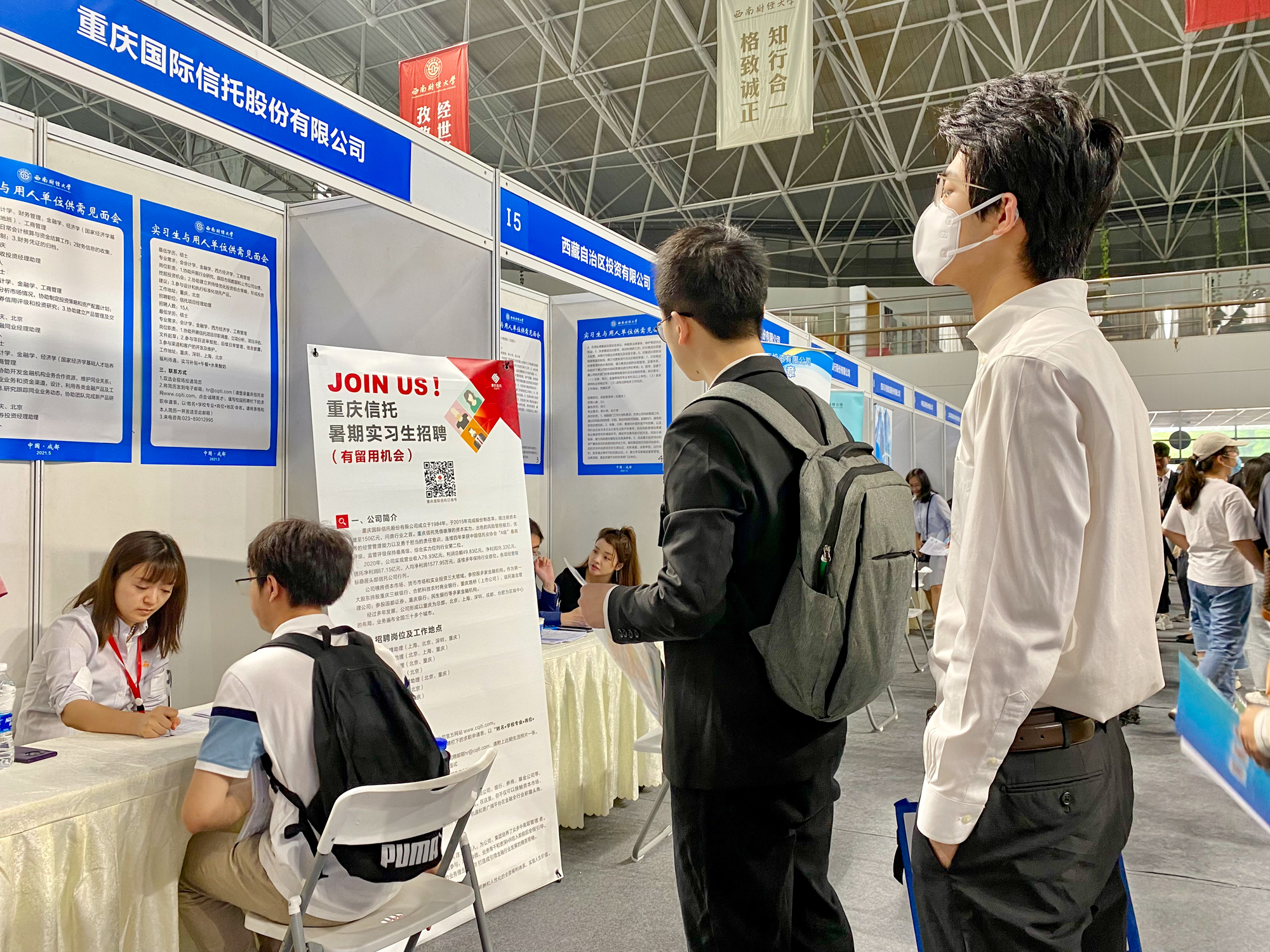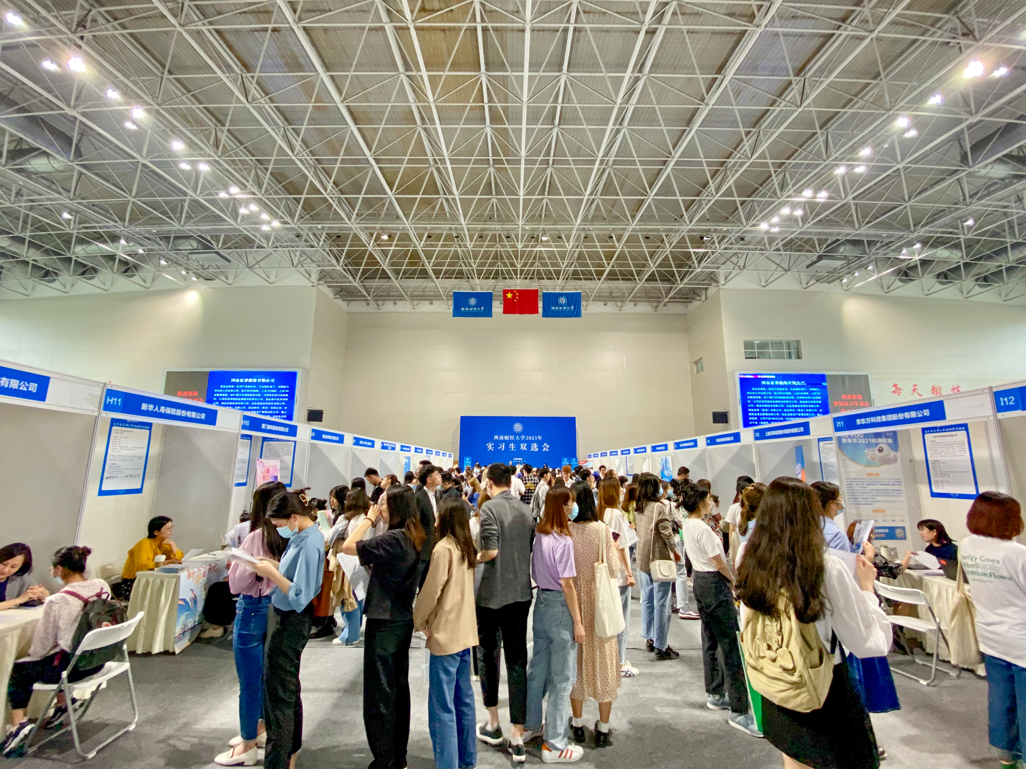 5月14日,必赢272net入口2021年大型实习生双选会在柳林校区光华体育馆举行,来自全校各年级的3000余名同学参加了双选会。