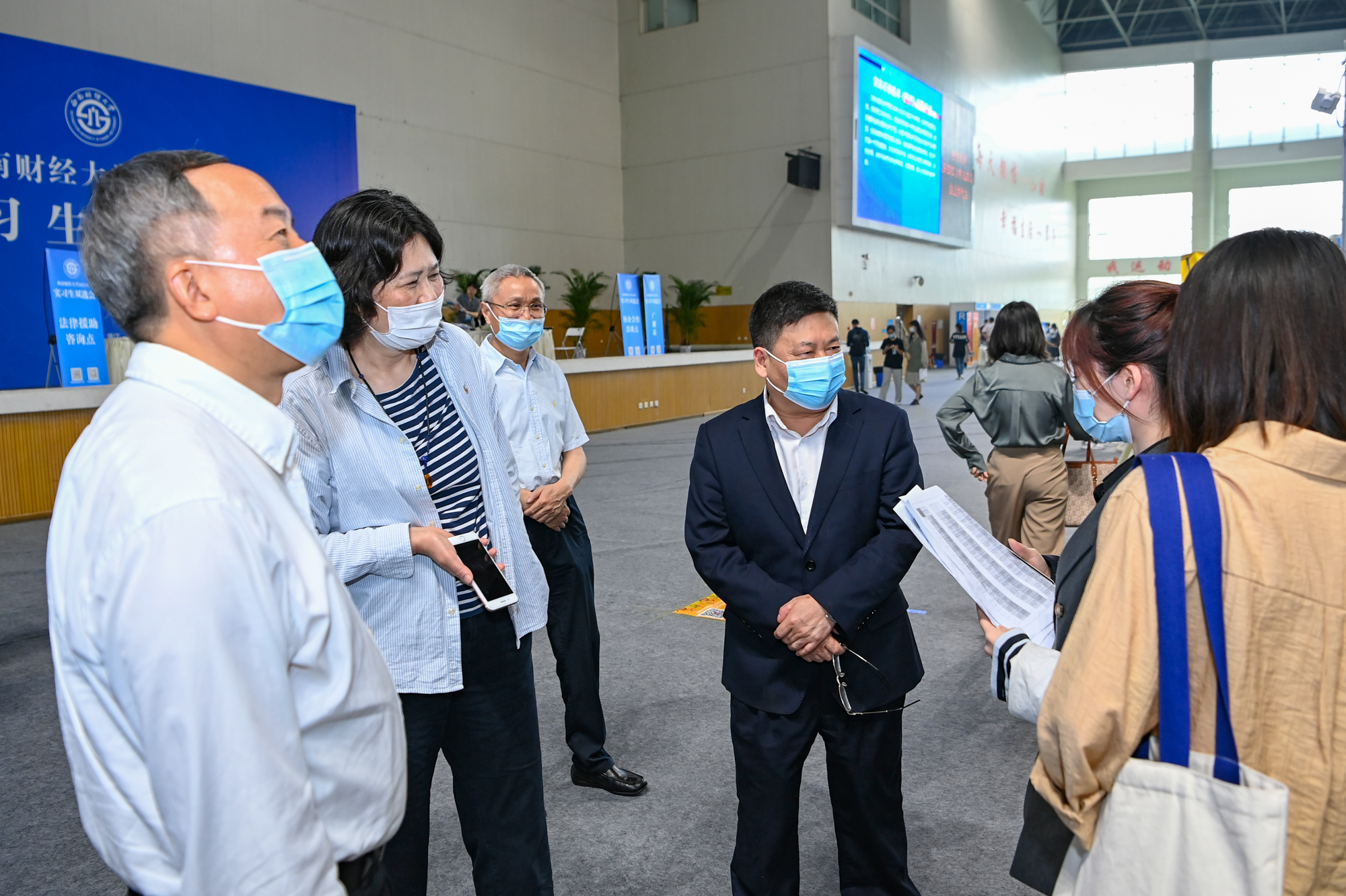 党委书记赵德武,党委副书记、校长卓志,党委副书记曾道荣到场与用人单位和参会学生亲切交流,介绍学校人才培养特色,感谢用人单位到校选才,鼓励学生通过参与实习实践等方式积极做好职业规划,主动服务基层和国家重点领域,实现更充分和更高质量的就业。