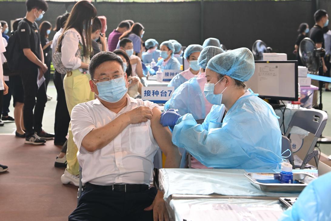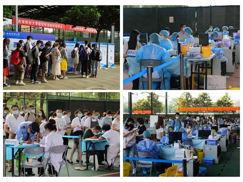 集中接种期间,党委书记赵德武等学校领导班子成员带头接种,各单位按照方案安排,分单位、分时段有序组织师生参加接种。接种现场,师生在安保人员和志愿者的引导下有序成队,经过体温测量后依次进入候种区。场馆内,健康预检、信息录入确认、疫苗接种、现场留观、应急处置各流程环环相扣、安全规范。集中接种工作由温江区柳城社区卫生服务中心负责疫苗供应等具体环节,属地相关医疗单位和校医院医务人员团队协作接种,工作各环节、全过程细致严谨、有序高效。