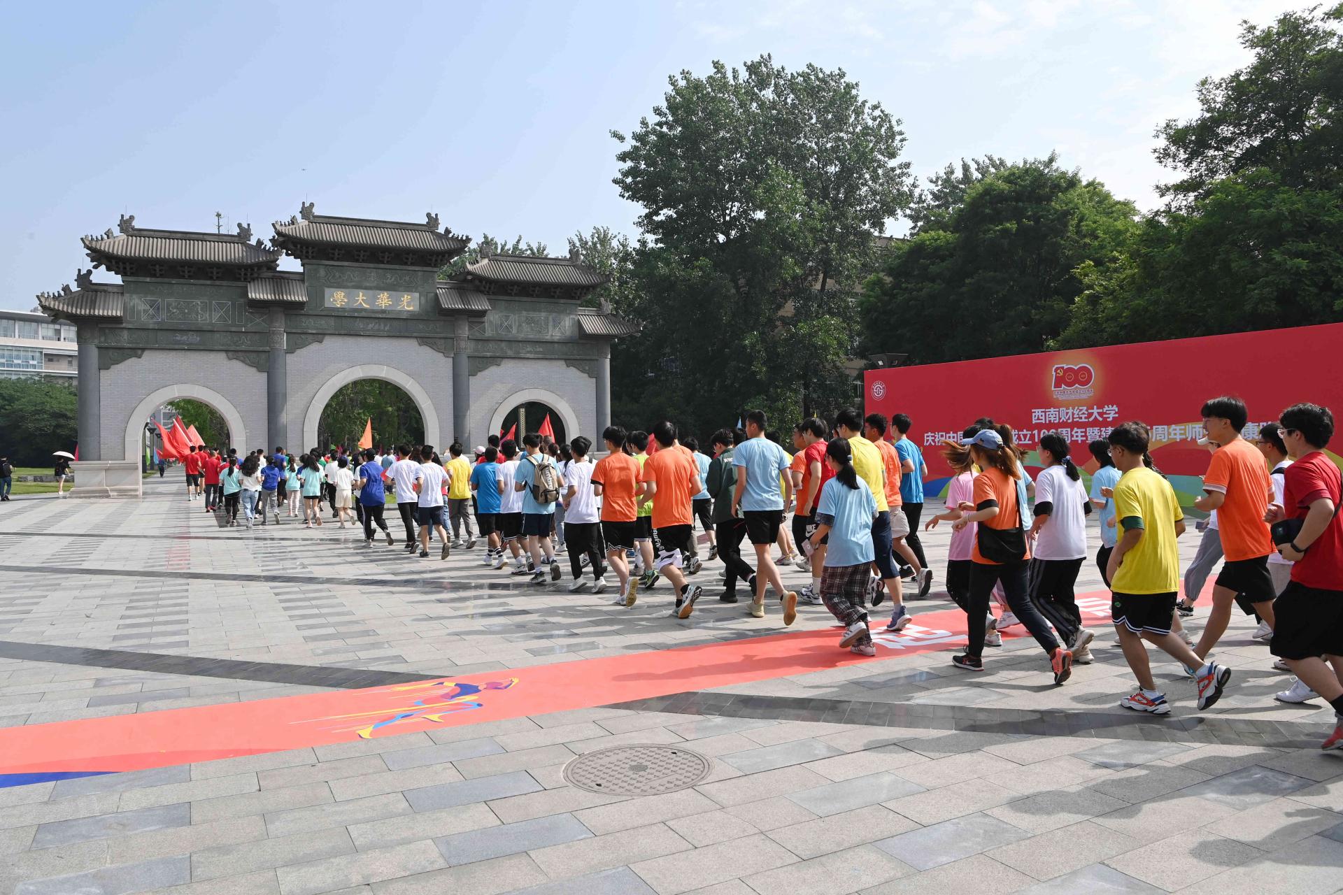 上午9:30,随着党委书记赵德武发令枪声响起,校庆健康跑正式开始!从光华大学门到北大门的跑步路线,宛如一道从黄浦江畔飞跃浣花溪旁点亮柳林华章的历史之光,照耀着西南财大96载弦歌不辍、兴学报国的光辉奋斗历程。
