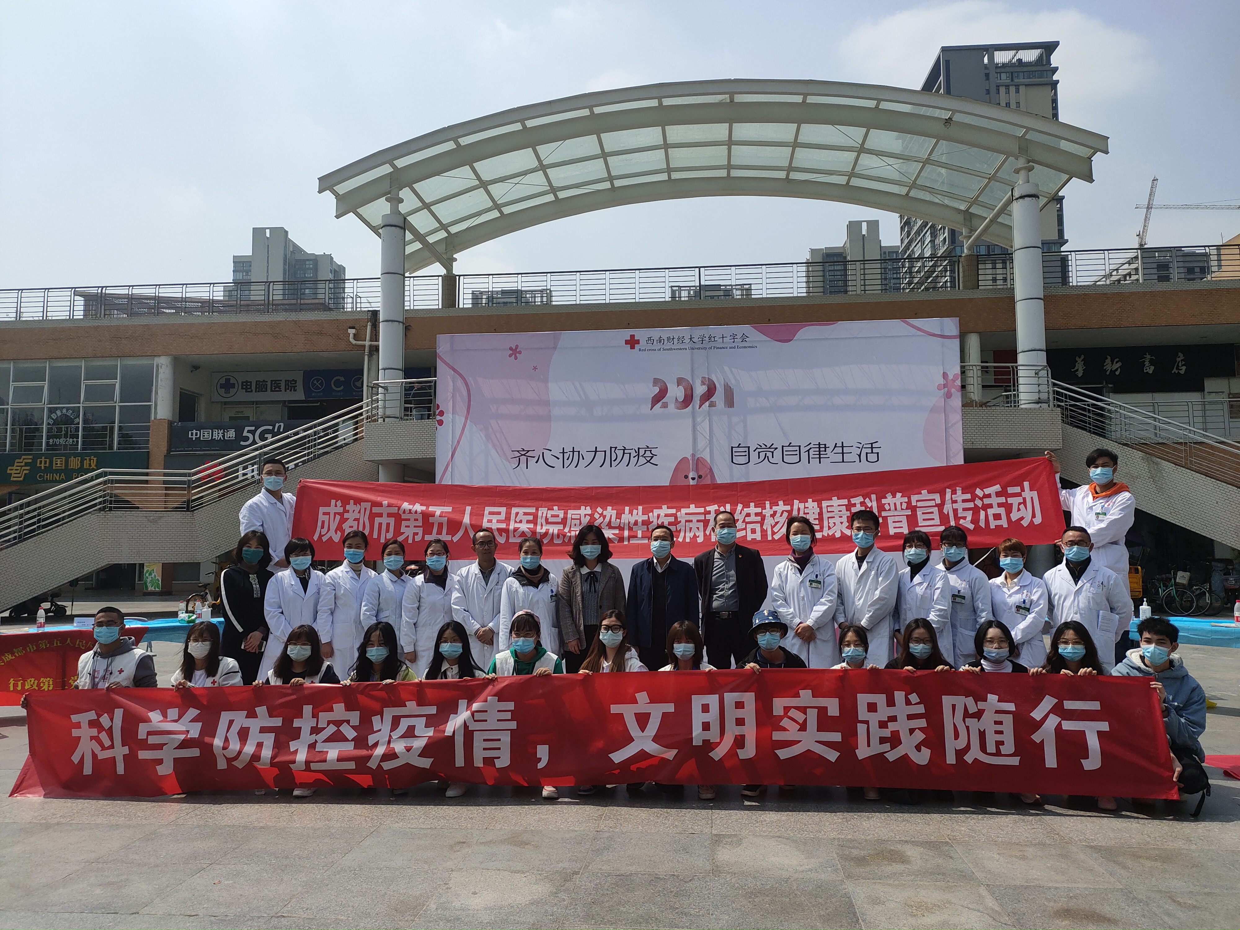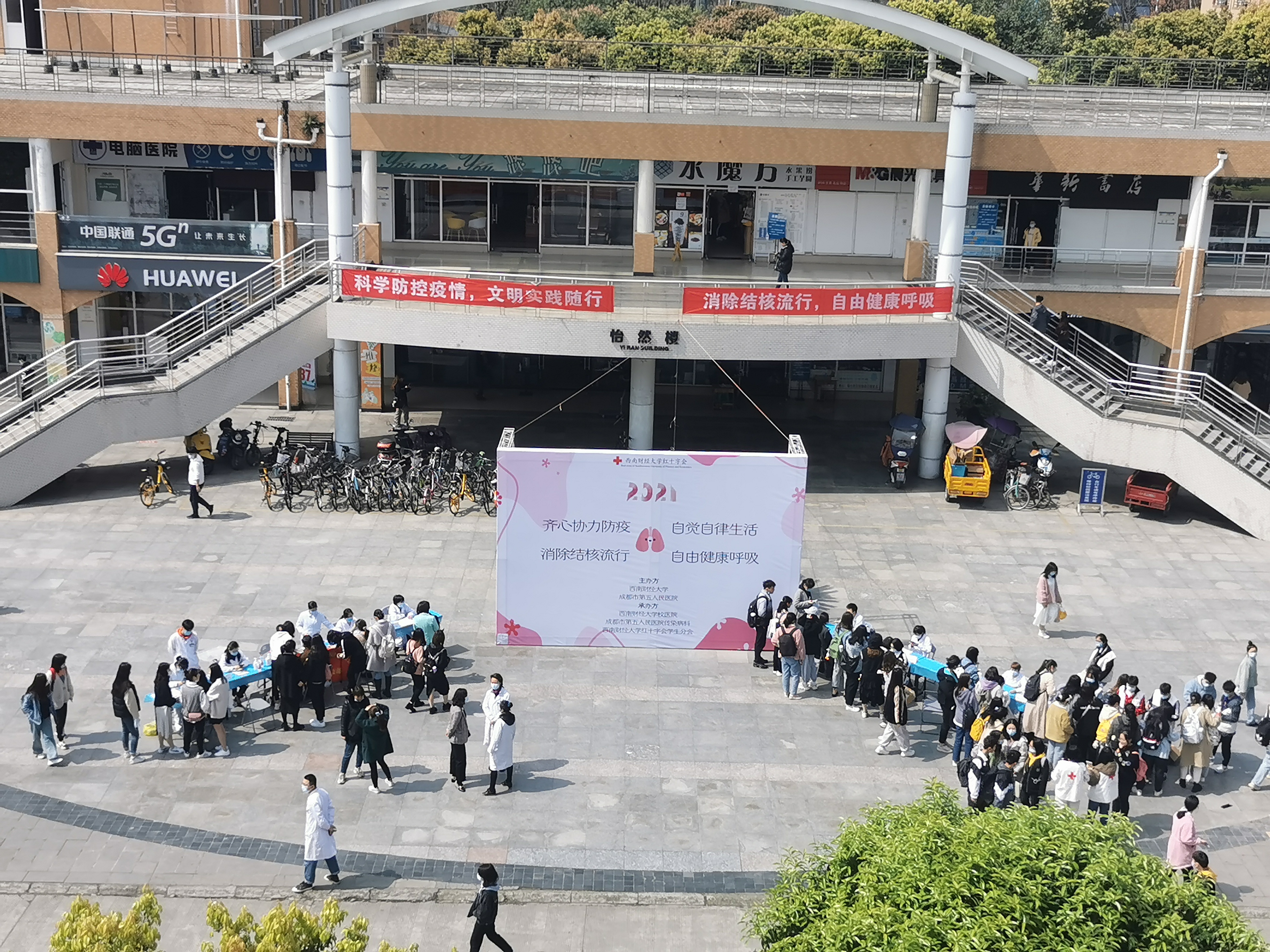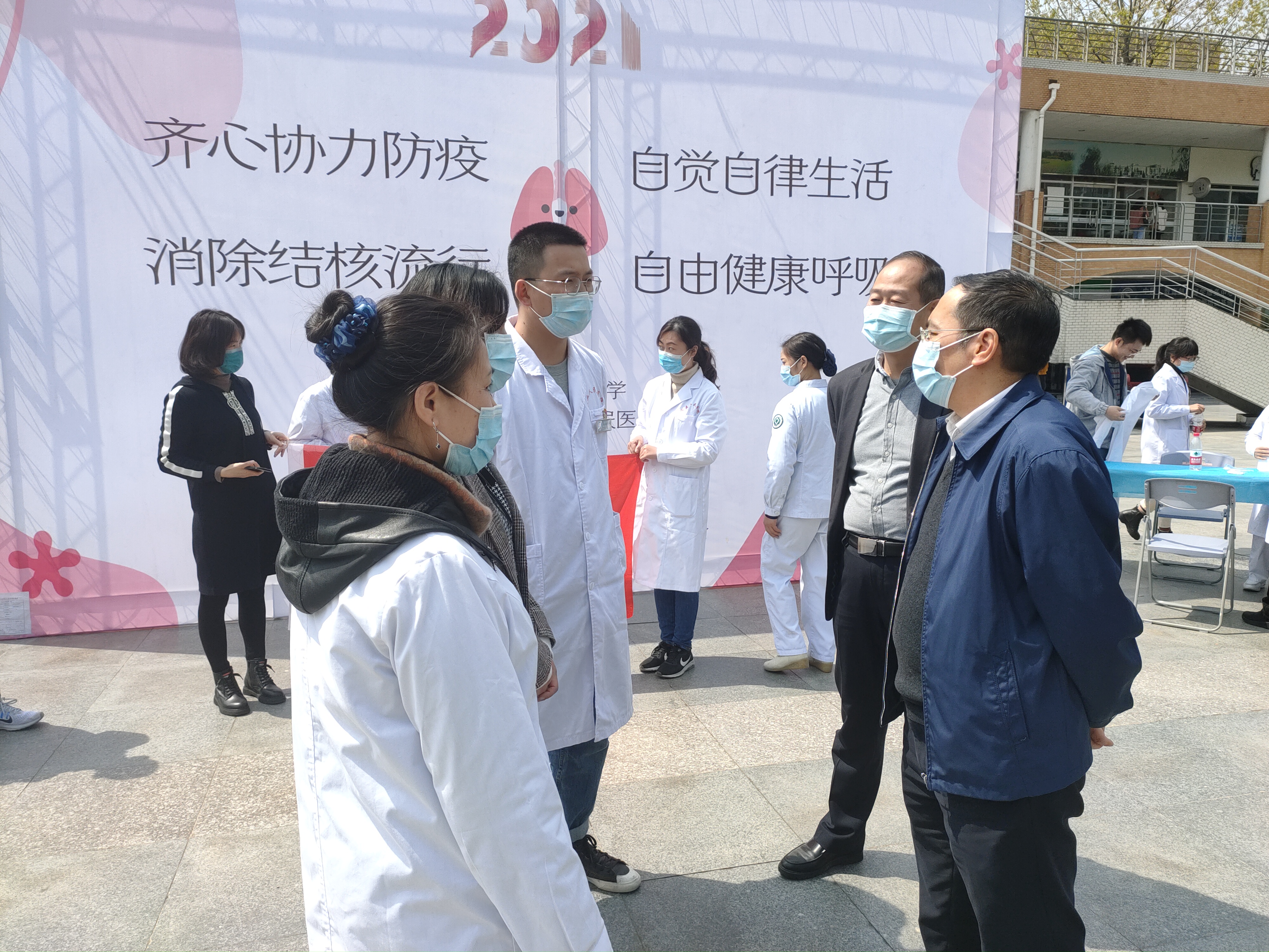 3月23日,在第26个“世界防治结核病日”前夕,为贯彻落实“师生健康中国健康”主题健康教育活动,创建“无结核校园”,学校携手成都市第五人民医院在怡然楼广场开展抗痨防疫宣传教育暨大型义诊活动。党委常委、副校长史代敏来到义诊现场指导。