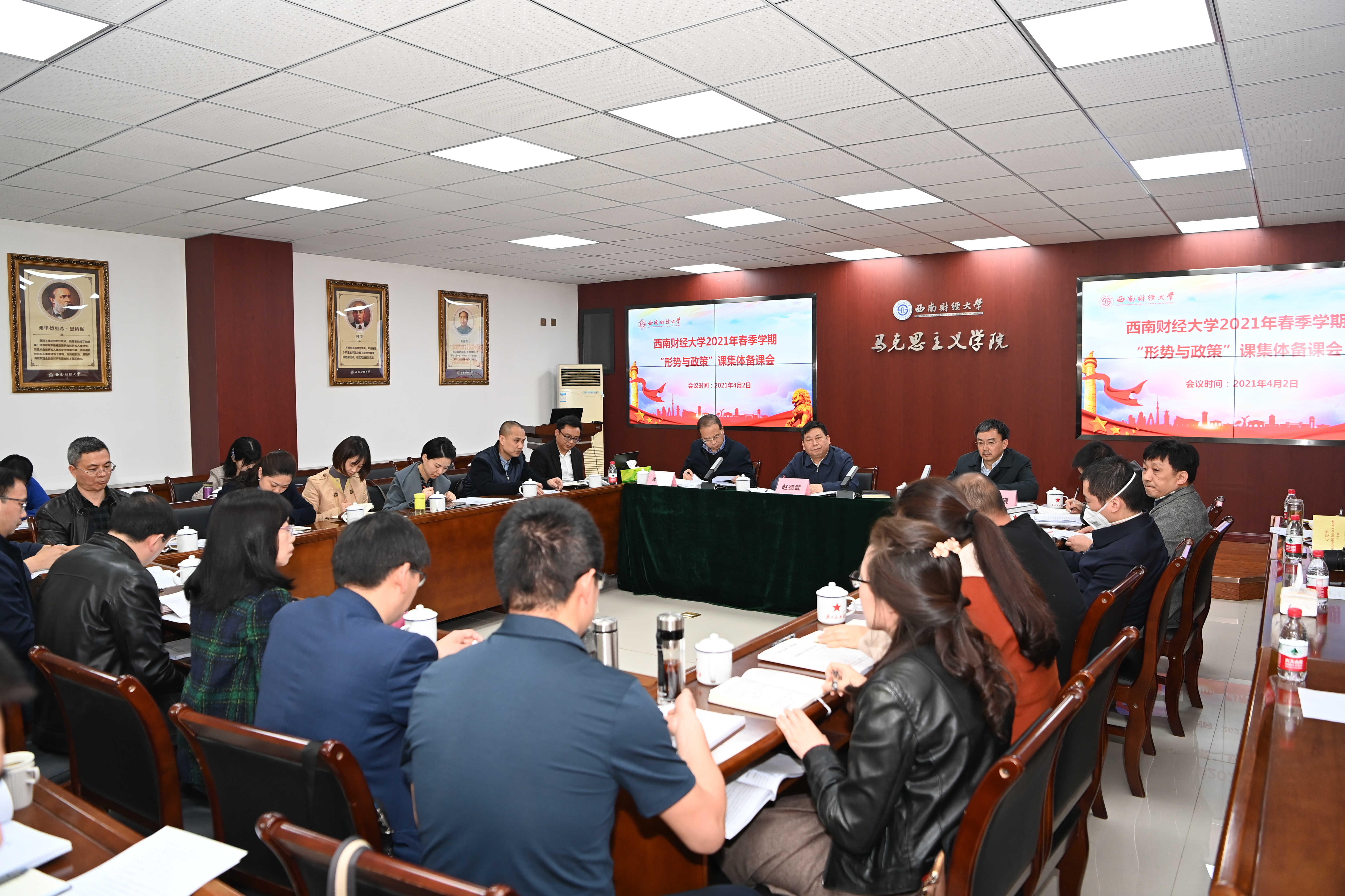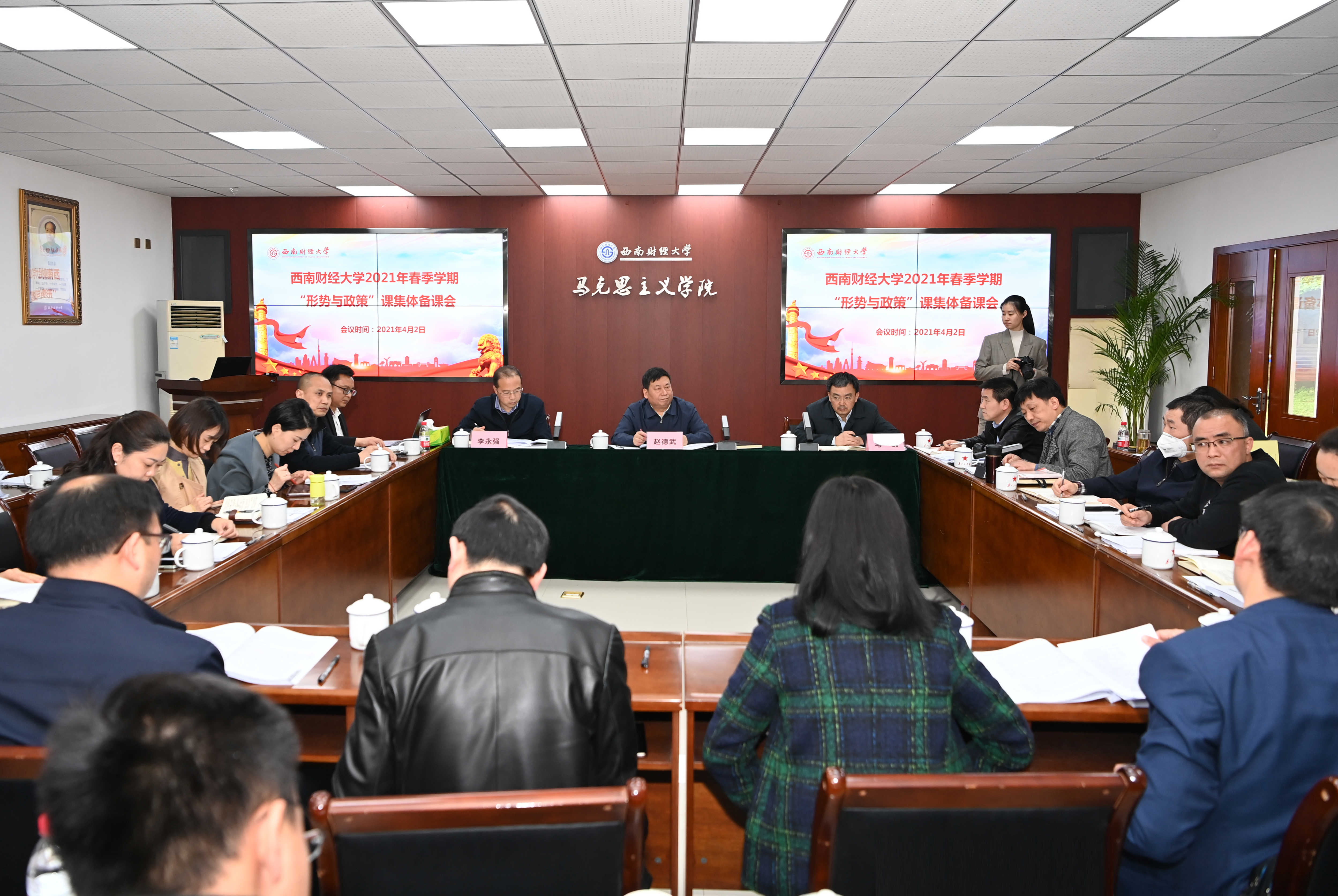 4月2日,学校在通博楼A117会议室召开2020-2021春季学期“形势与政策”课集体备课会。学校党委书记赵德武,党委副书记马骁,党委常委、副校长李永强,组织人事部、宣传统战部、学生工作部、教务处、研究生院、教师教学发展中心、马克思主义学院等单位负责人,“形势与政策”课程组长、备课专家、任课教师代表等参加会议。