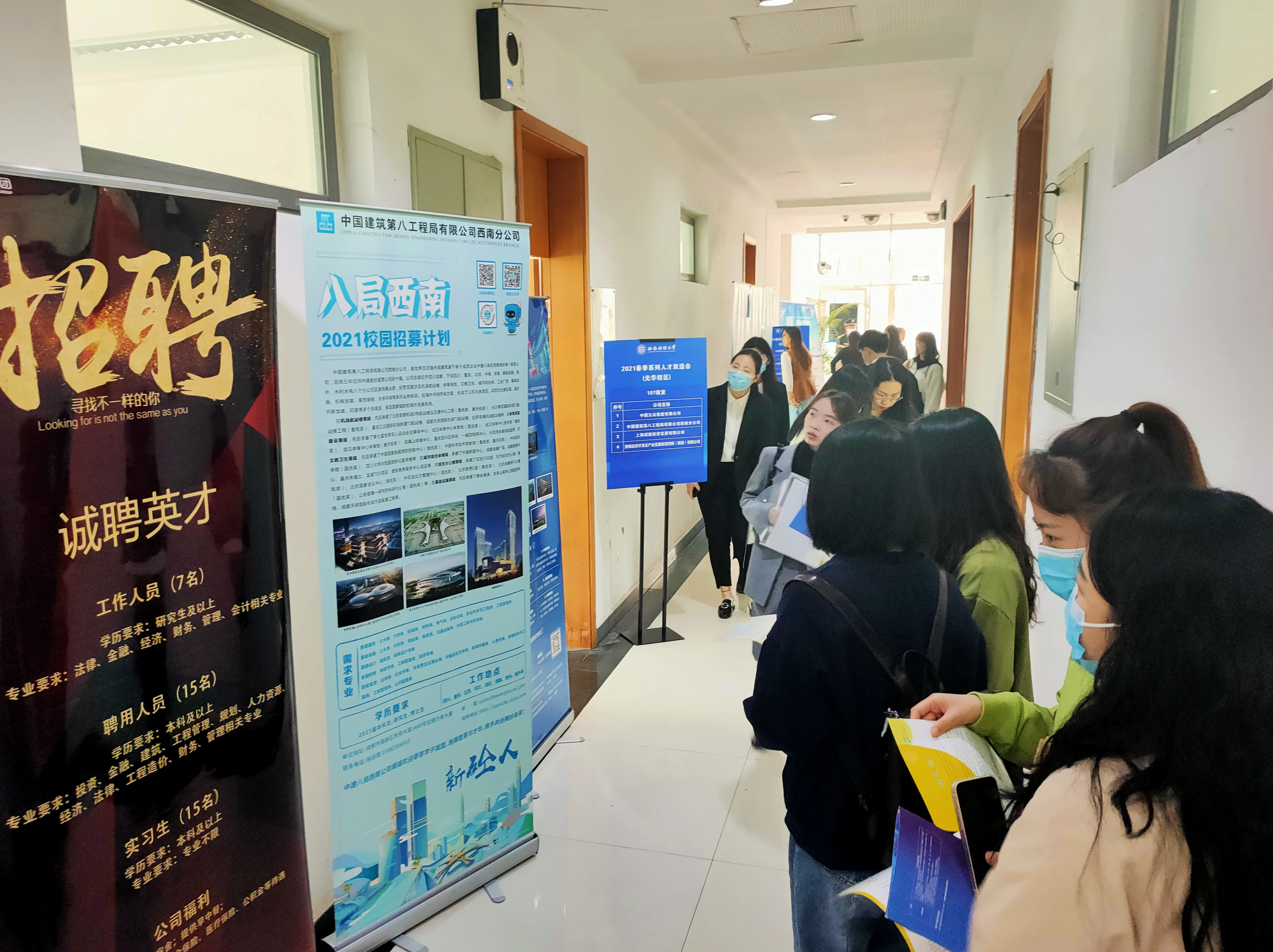4月16日,必赢272net入口2021年春季系列人才双选会在光华校区明德楼举行。中信证券四川分公司、中建八局、万科等来自金融业、信息传输、软件和信息技术服务业、制造业、建筑业、房地产业、教育业的38家用人单位来校招聘,主要针对硕士毕业生提供就业岗位1105个。
