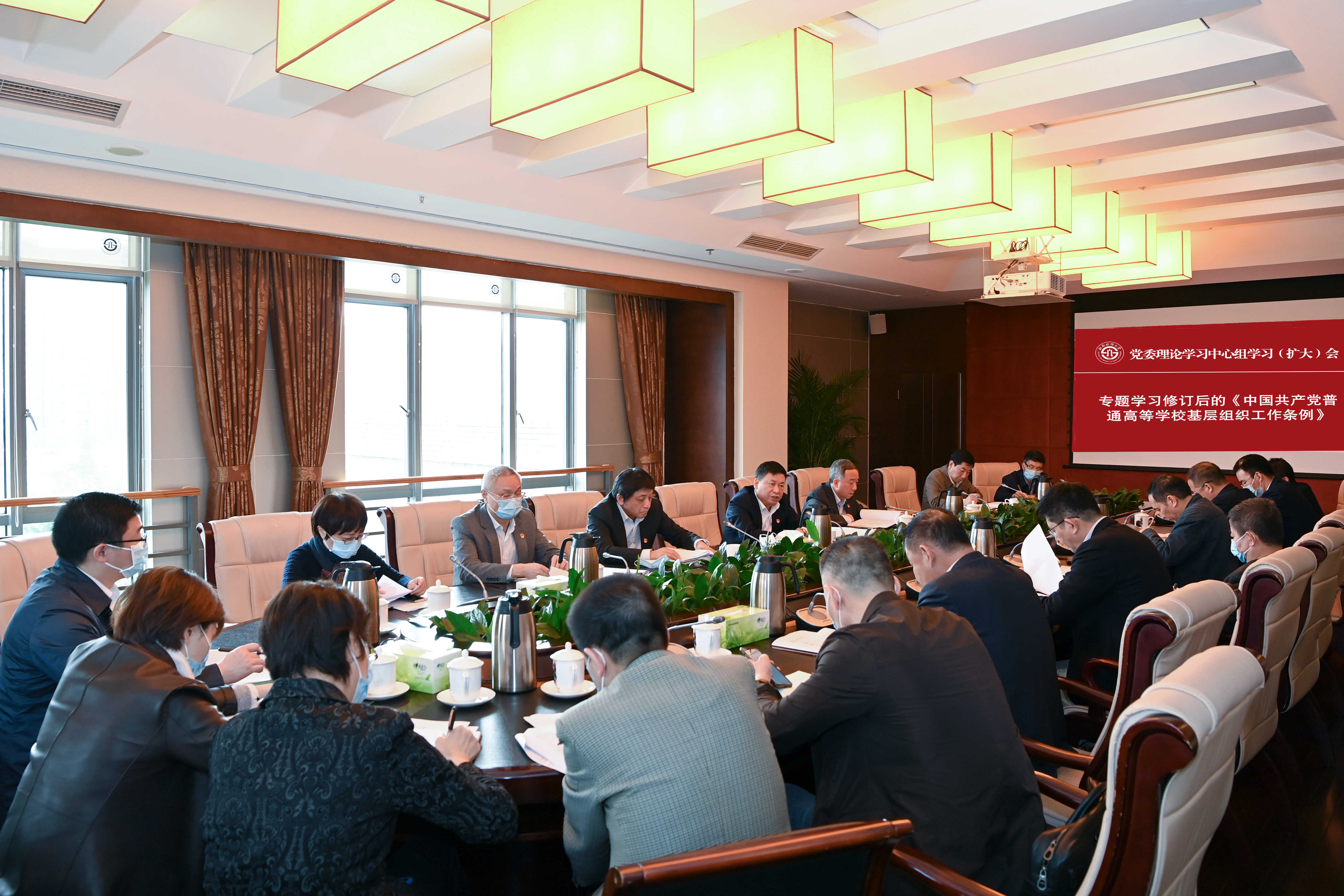 会议指出,新修订的《中国共产党普通高等学校基层组织工作条例》,深入贯彻习近平新时代中国特色社会主义思想和党的十九大、十九届二中、三中、四中、五中全会精神,贯彻落实新时代党的建设总要求和新时代党的组织路线,对高校基层党组织工作作出全面规范,是高校党的建设实践探索和制度建设的重要成果,是新时代高校党的建设的基本遵循。《条例》修订完善了指导思想和目标原则,提出了高校党组织工作应当遵循5个方面原则,事关高校党建工作全局。在建党百年的重大时刻修订颁布这项重要党内法规,对于学校全面贯彻党的教育方针,落实立德树人根本任务,建设高质量教育体系,培养社会主义建设者和接班人,意义重大、影响深远。