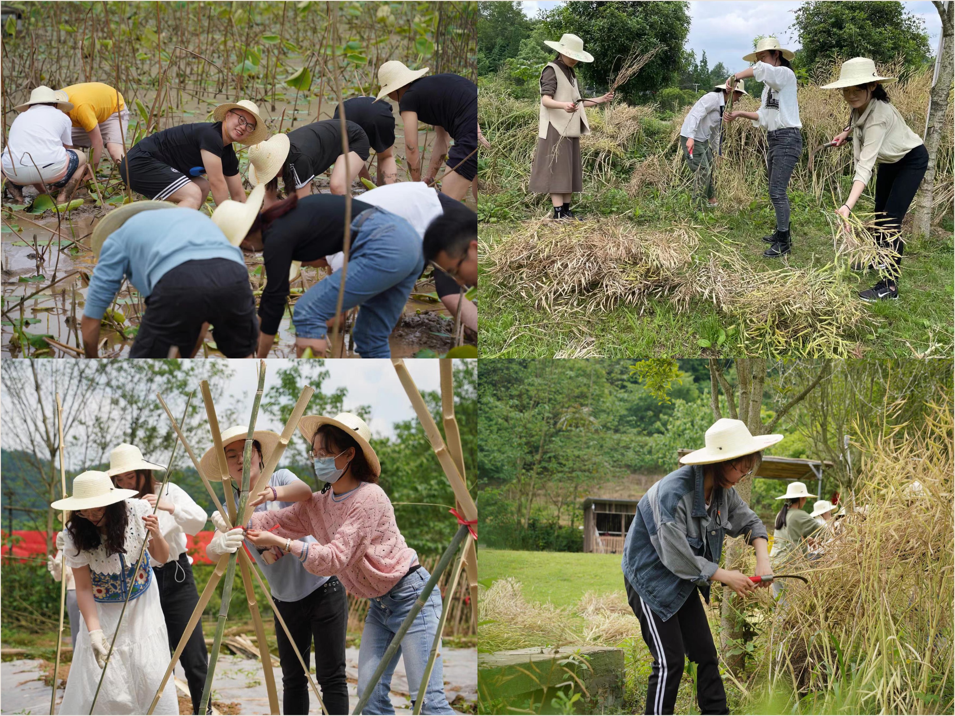 下午,师生们到中国最美乡村、四川省乡村振兴示范村五星村实地观摩新农村建设成果,对建设社会主义新农村和实施乡村振兴战略有了更深刻的理解,对“党组织+新型集体经济组织”的发展治理模式有了更直观的认识。师生们在崇州缘道农场戴上草帽,挽起袖子,躬耕田间。在农场老师的指导下,完成了平整田地、制作保温苗床和营养土、精细播种等全流程的晚稻育秧过程;在田间为四季豆搭起了支架,收割了菜籽;在池塘赤脚挖藕,收获颇丰。同学们浸润着汗水,在田间感悟着劳动的光荣和喜悦。活动期间,必赢与崇州缘道农场举行了校外劳动实践基地授牌仪式,双方将在劳动实践育人方面继续深入开展合作。