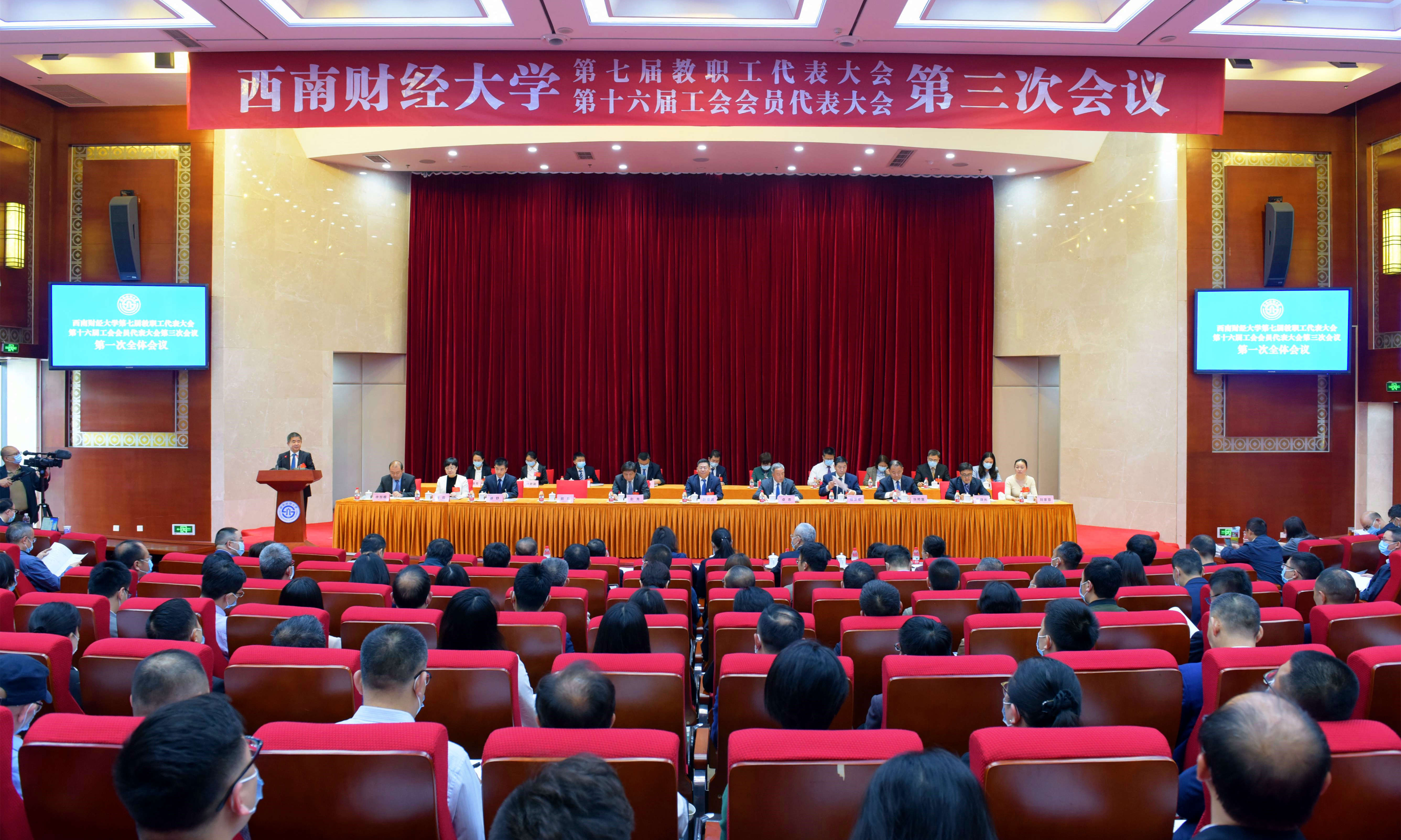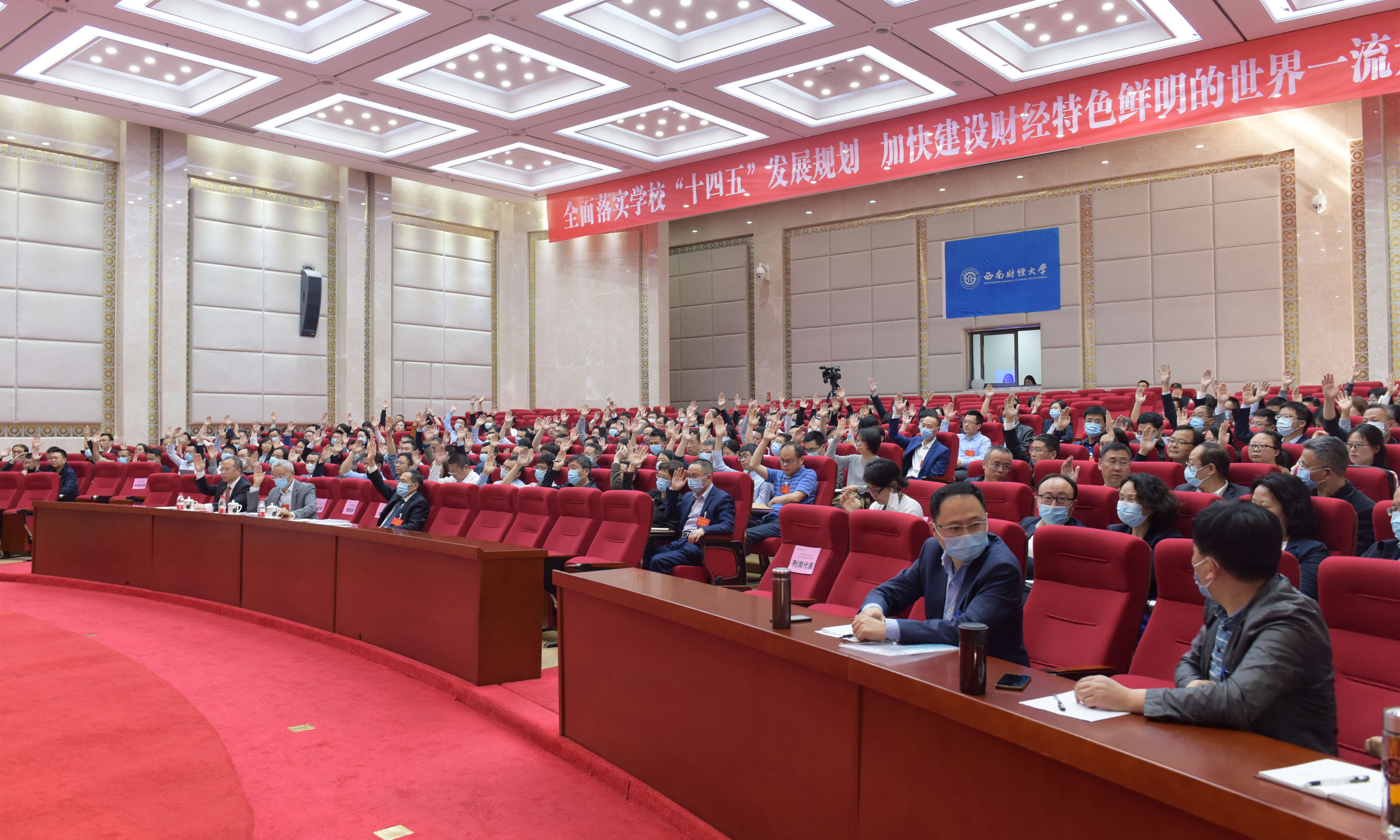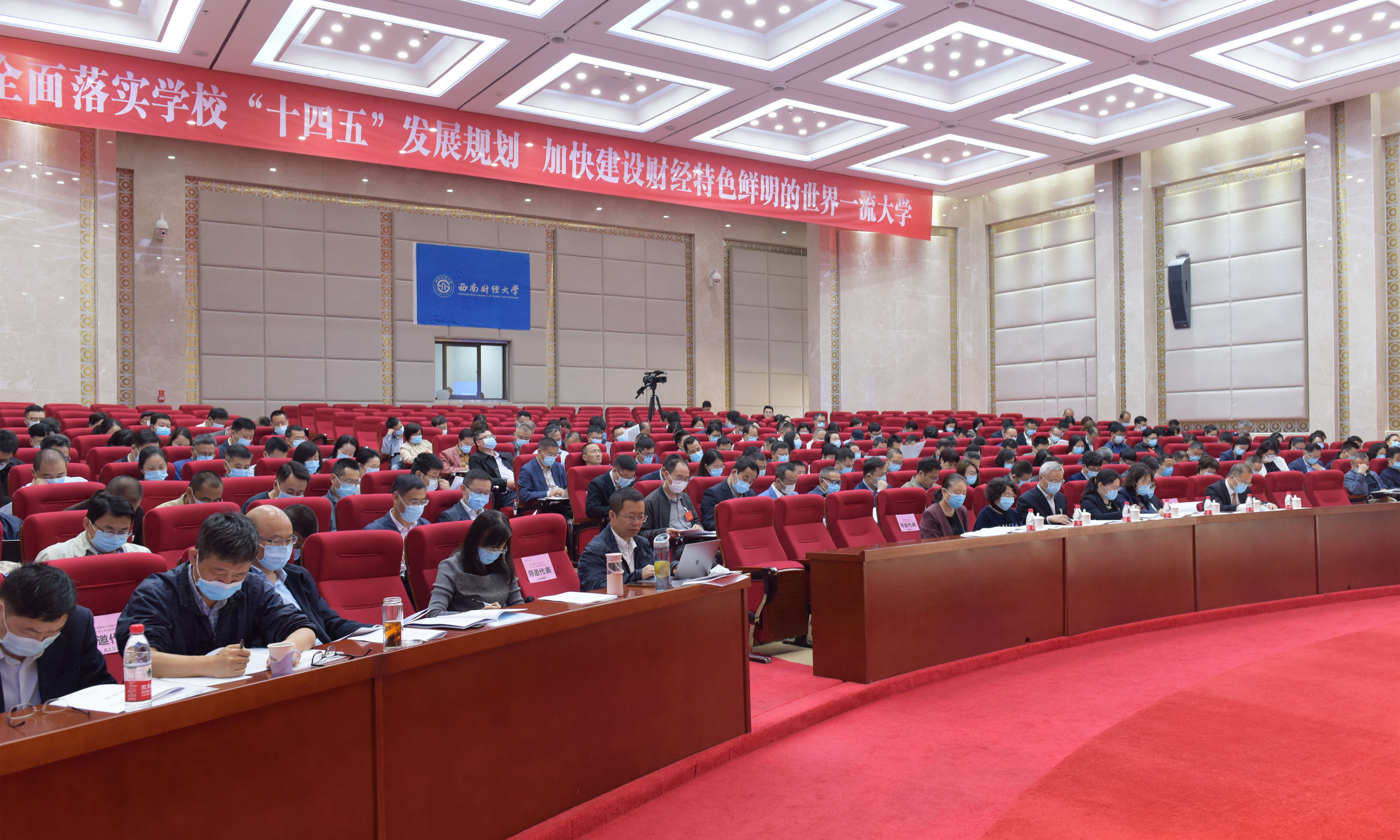 卓志作工作报告,从开创党建思政新局面、全力抗击新冠肺炎疫情、决战决胜脱贫攻坚收官之战、扎实推进学科建设、完善人才培养体系、提升科研与社会服务能力、加强师资队伍建设、提高国际交流水平、强化资源保障能力、推进文化民生事业十个方面全面回顾总结了学校2020年以来的工作和“十三五”发展主要成就。卓志从编制背景、总体考虑、框架结构、建设目标四个方面对学校“十四五”发展规划做了深入分析,他强调,为推动各项重大部署落地落实、确保“十四五”总体目标得以实现,一是要聚焦初心使命,加快推进教育现代化;二是要聚焦改革创新,推动学校高质量发展;三是聚焦交叉融合,强化“新财经”战略引领;四是聚焦奋进超越,落实“双一流”战略任务。他要求,要全力以赴做好“十四五”开局工作,深入实施“百年行动”,不断提升党建和思想政治工作质量;推进重点领域关键环节改革攻坚,不断塑造高质量发展新优势;全面推进深化新时代教育评价改革落实落地,进一步激发内涵发展新活力;提升高质量发展保障能力,努力建设和谐美丽幸福家园。他希望,全校师生主动作为、奋发有为、担当善为,全力实现“十四五”开好局、起好步,以优异成绩庆祝中国共产党成立100周年,为全面建设社会主义现代化国家、实现中华民族伟大复兴中国梦作出新的更大贡献。