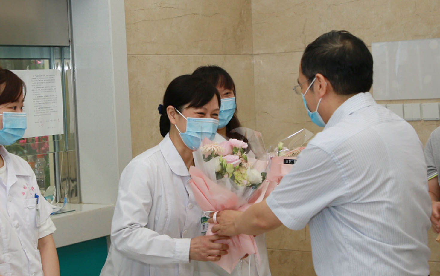 缤纷五月,繁花似锦,我们如约迎来了第110个“国际护士节”。5月12日,受学校党委书记赵德武和党委副书记、校长卓志委托,党委常委、副校长欧兵、史代敏前往校医院亲切慰问了一线医护人员。校工会、后勤服务总公司负责人陪同慰问。