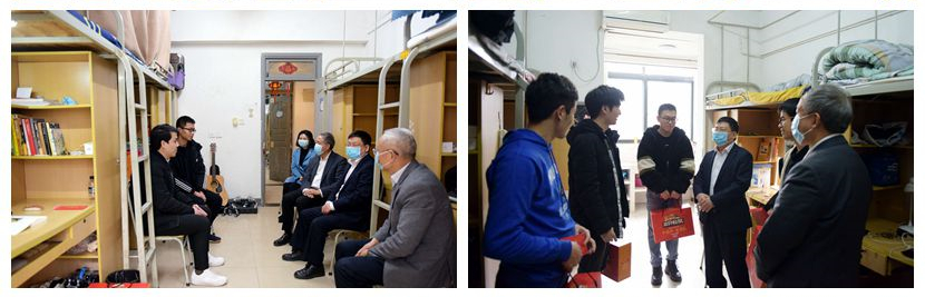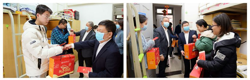 2月8日下午,值此新春佳节之际,党委书记赵德武,校长、党委副书记卓志一行深入学生公寓,看望慰问留校学生,送上精心订制的春节大礼包,向同学们致以亲切关怀和新春祝福,并向节假日期间坚守岗位、辛勤付出的工作人员表示衷心的感谢和良好的祝愿。