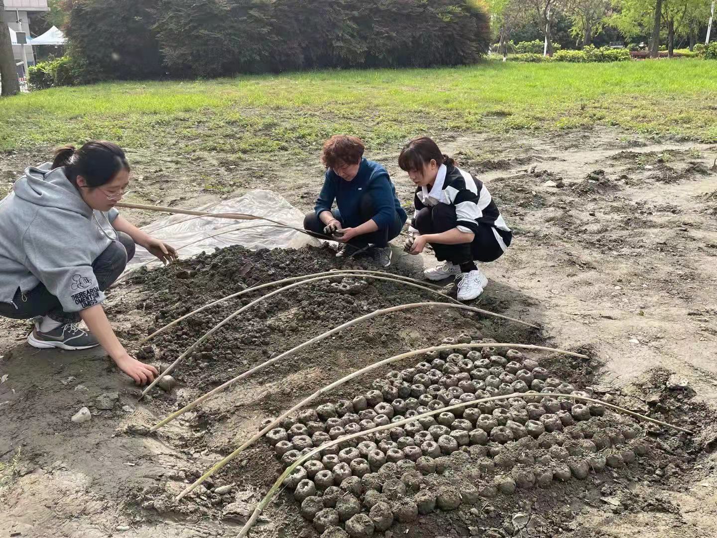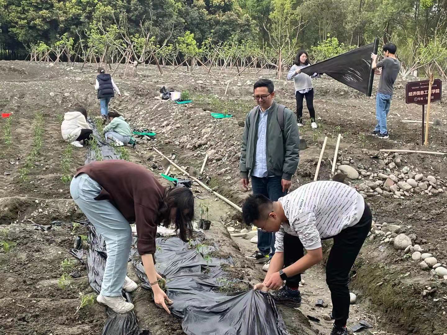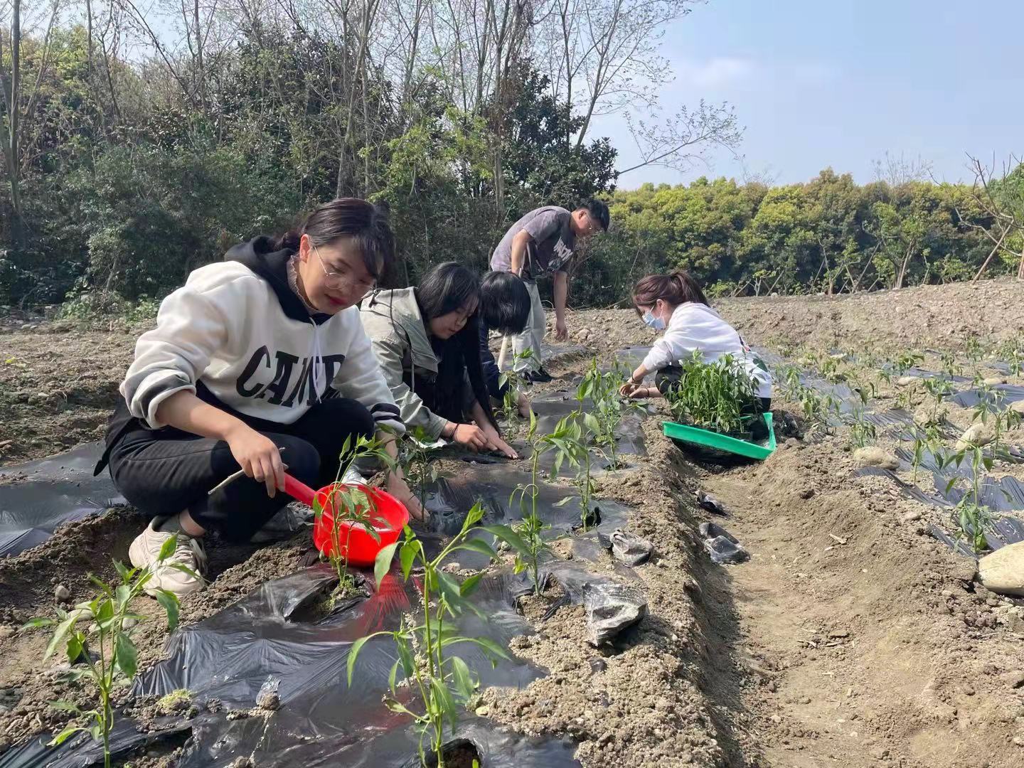 理论课程结束后,同学们拿起锄头、水桶、水瓢等劳动工具,前往校内“耕读田园”劳动实践基地,投入到热火朝天的蔬菜种植劳动中。在授课教师和后勤助教团队的指导下,同学们学习起垄、平整育苗床、制作育苗肥球、播撒种籽、栽种秧苗、施肥覆膜等农耕技术,将理论知识转化为切实的种植过程。通过辛勤劳动,同学们顺利完成责任田的果蔬育苗、播种工作,一颗颗种子正待生根发芽。与此同时,各学院(中心)也在分区责任田同步开展“社会大课堂”校内生产劳动实践活动。