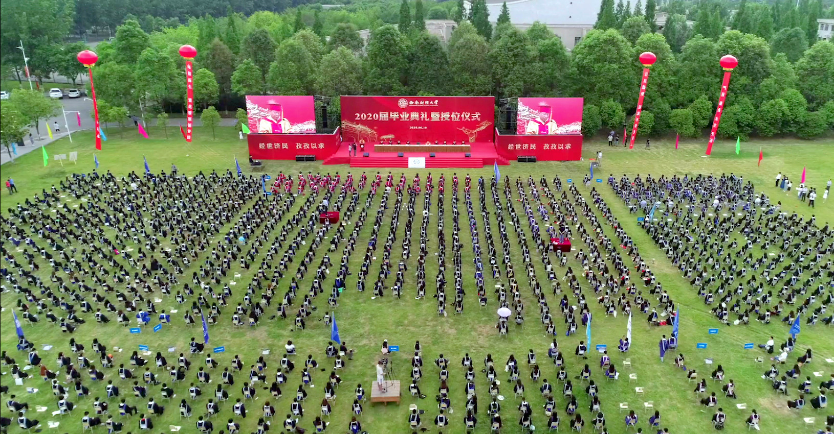 新闻事件:6月10日,学校以“草坪典礼+线上直播”的方式为6000余名2020届毕业学子举行隆重而别样的毕业典礼暨授位仪式。全校党员干部、师生员工以责任担当顺利实现两学期全面复学复课、返校返工,美丽校园恢复勃勃生机,“云上”校庆、“云上”毕业典礼、“云上”运动会等成为师生最特殊珍贵的记忆。