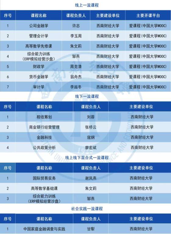 延伸阅读:学校着力加强顶层设计、创新培养模式、深化课程建设,加大新财经人才培养力度。入选教育部“首批经济学拔尖学生培养基地”。与电子科技大学共同举办的“金融学+计算机科学与技术”国内首个联合学士学位人才培养实验班顺利开班。新增金融科技、人工智能、供应链管理三个本科专业开始招生。特拉华数据科学学院首届学生入学。8个专业入选首批国家级一流本科专业建设点。5门英语慕课在“爱课程”国际平台首发上线,位列全国高校前茅。深入贯彻落实习近平总书记重要指示批示精神和全国研究生教育会议精神,召开学校研究生教育会议,制定《全面推进新时代研究生教育改革发展实施意见》。探索实施学术学位和专业学位人才分类选拔,修订完善博士后工作管理办法,应用经济学博士后科研流动站在年度综合评估中获得“优秀”。