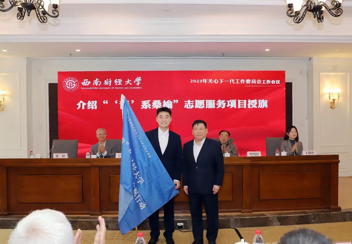 曾道荣宣读了学校2023年“读懂中国”活动获奖名单,赵德武、廖明铨分别为获奖单位和个人颁发荣誉证书。校团委书记王偞婷宣读关工委学生委员会成员名单,曾道荣为关工委学生委员颁发聘书。陈星汉同学介绍“‘青’系桑榆”志愿服务项目,赵德武为“‘青’系桑榆”志愿服务项目授旗。