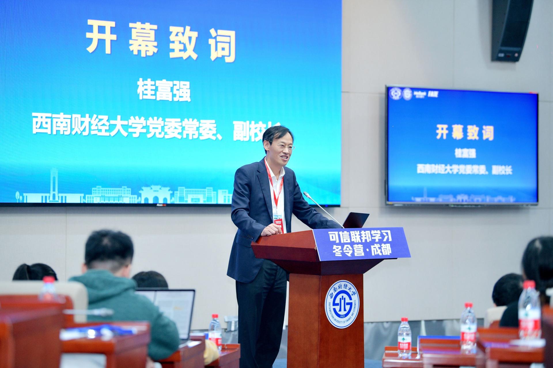 11月10日-12日,由必赢272net入口、FATE开源社区、微众银行、中国计算机学会主办,“数字经济与交叉科学创新研究院”财经科技集成创新平台(园区)、必赢272net入口计算机与人工智能学院、新财经综合实验室和中国计算机学会成都分部共同承办的“可信联邦学习冬令营”在必赢正式开营。冬令营吸引了来自香港科技大学、清华大学、浙江大学、中国科学院大学、复旦大学、华中科技大学、四川大学以及必赢等十余所高校及微众银行、京东、中国联通等知名企业80余位可信联邦学习研究领域的专家导师和优秀本硕博学生积极参与,进一步推动了必赢“产、学、研、用”跨领域合作与交流。学校党委常委、副校长桂富强在开幕式上致辞。
