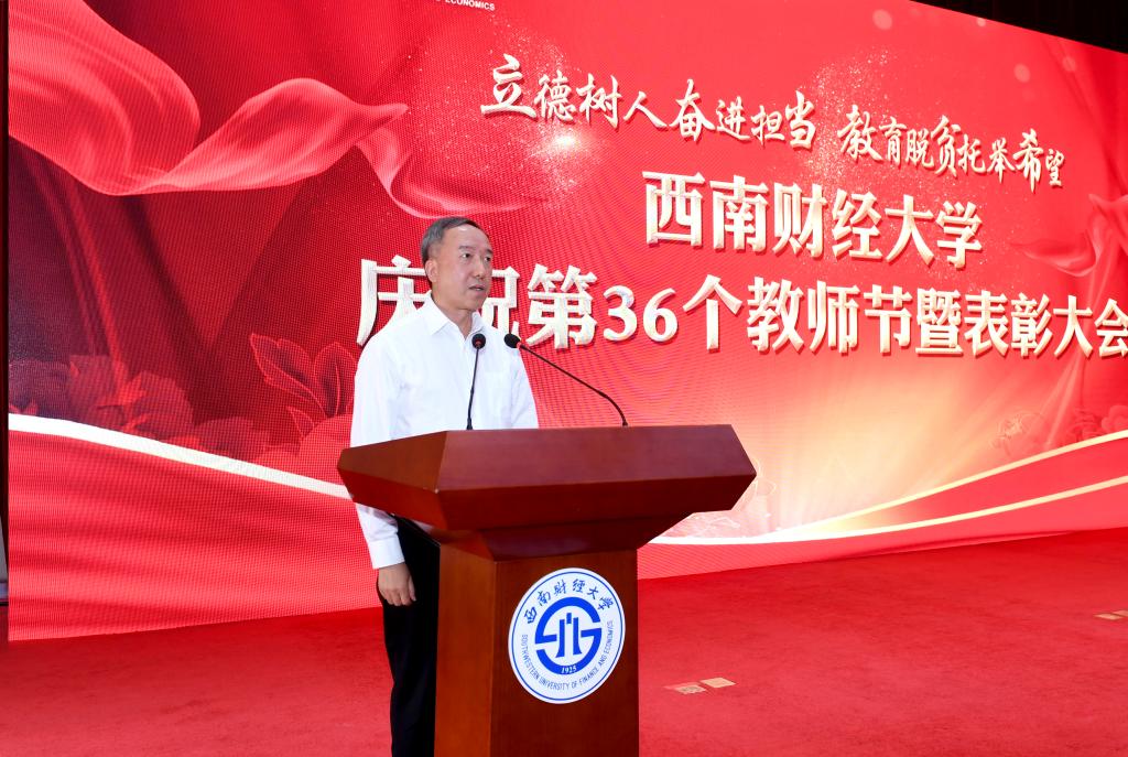 9月10日下午,学校在弘远楼105会议室隆重举行第36个教师节庆祝暨表彰大会,表彰先进集体和优秀个人,举行荣休及从教30周年纪念仪式。学校老领导王裕国,党委书记赵德武,校长、党委副书记卓志,党委常委、常务副校长彭龙,党委副书记马骁、曾道荣,党委副书记、纪委书记范卫宏,党委常委、副校长欧兵、史代敏、张邦富、李永强,获奖集体和个人,职能部门及学院(中心)代表,民主党派及台侨联教职工代表,港澳台及外籍教师代表,离退休教职工及新入职教职工代表参加大会。卓志主持大会。