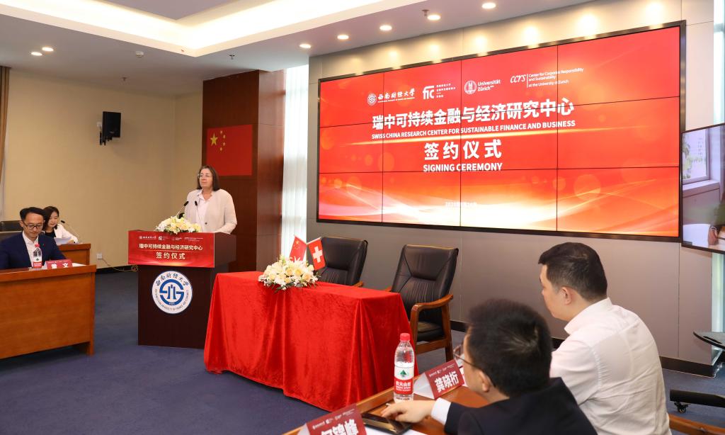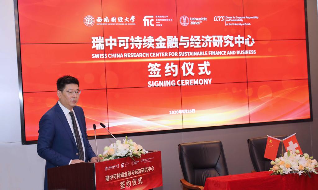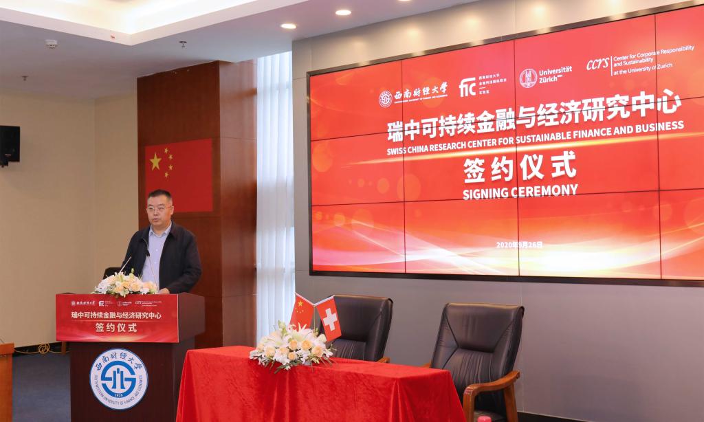 签约仪式上,梁其洲、高凯琳、尹庆双、菲利普·阿尔尼致辞表示,成立瑞中可持续金融与经济研究中心是企业、地方政府、教育机构的良性互动,对于成都建设具有国际影响力的西部金融中心将发挥重要作用,有利于进一步推动两国在经济、教育、文化等方面的深度合作。