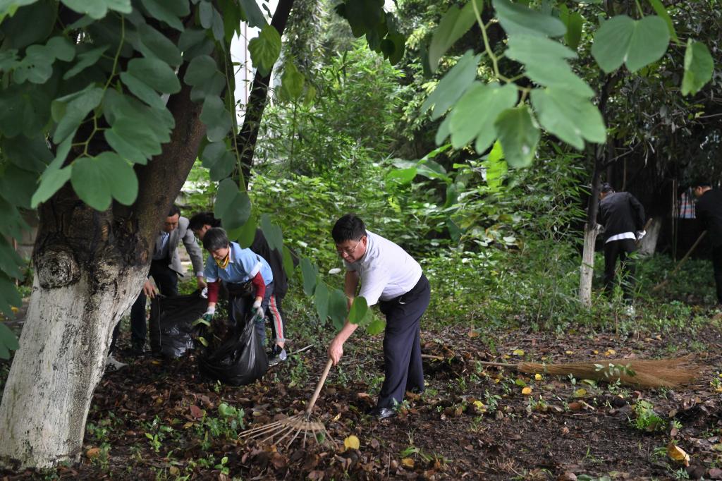 9月28日下午是全校集中开展公共区域大扫除时间,在校校领导赵德武、马骁、范卫宏、欧兵、史代敏、张邦富、李永强和广大中层干部、师生来到各自责任区域,纷纷拿起扫帚、竹耙、垃圾袋,迅速投入到了地面清扫、落叶清理、垃圾清运等紧张的劳动之中。劳动过程中,各级领导干部不仅身先士卒,为师生树立了良好榜样,而且也与师生就思想、学习、工作情况进行亲切交流,劳动场面紧张忙碌、其乐融融。