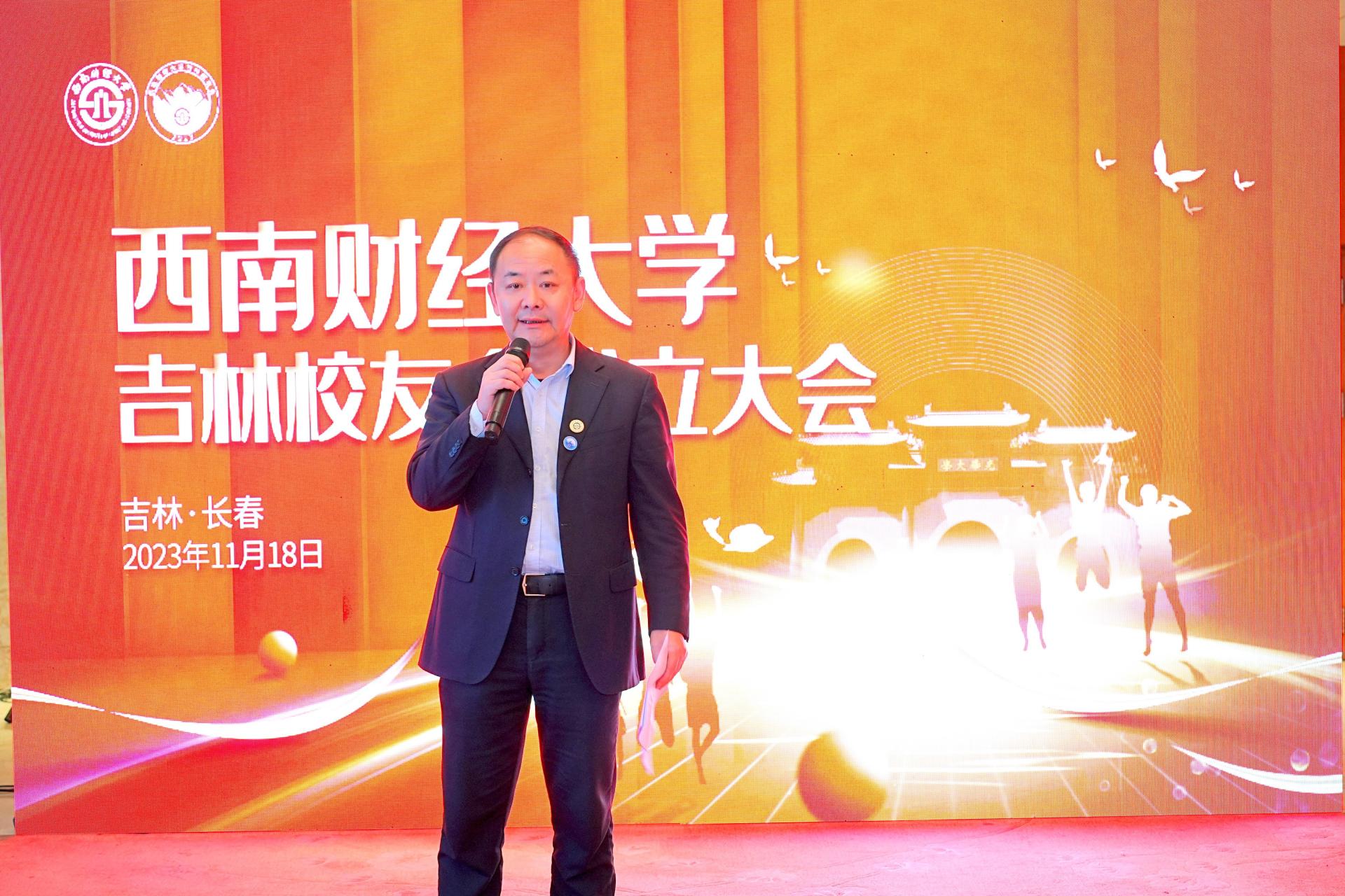 张邦富受学校党委书记赵德武,党委副书记、校长李永强的委托,代表全校师生向与会校友致以亲切问候,向吉林校友会的成立表示热烈祝贺。他对扎根吉林、服务吉林,为推动吉林全面振兴全方位振兴不懈贡献必赢力量的广大校友给予了高度评价,希望广大校友始终秉承“经世济民、孜孜以求”的必赢精神,以昂扬斗志、务实作风取得新的成绩、做出新的贡献。张邦富向广大校友介绍了学校近年来改革发展情况和“双一流”建设取得的重要成果,并对吉林校友会充分发挥纽带作用,团结广大在吉校友积极参与学校“新财经”战略升级、百年校庆筹备、建设财经特色鲜明的世界一流大学的各项重要工作表示了高度期许。