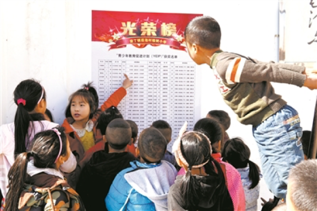 2018年6月,后池村棕树小学贴出当年的光荣榜,孩子们闻讯蜂拥而来,找寻榜上有没有自己的名字。光荣榜之下,调皮的小吉牛不论怎么踮起脚尖,始终都看不到光荣榜。情急之下,他爬上一旁的篮球架。小吉牛曾是同学们眼里的“坏”孩子,经常逃课打架,但自从棕树小学参加了奖励计划,他按时上学、连续两次获得了“出勤奖”,每次获得150元奖励。如今,小吉牛的成绩和行为习惯发生了很大变化。