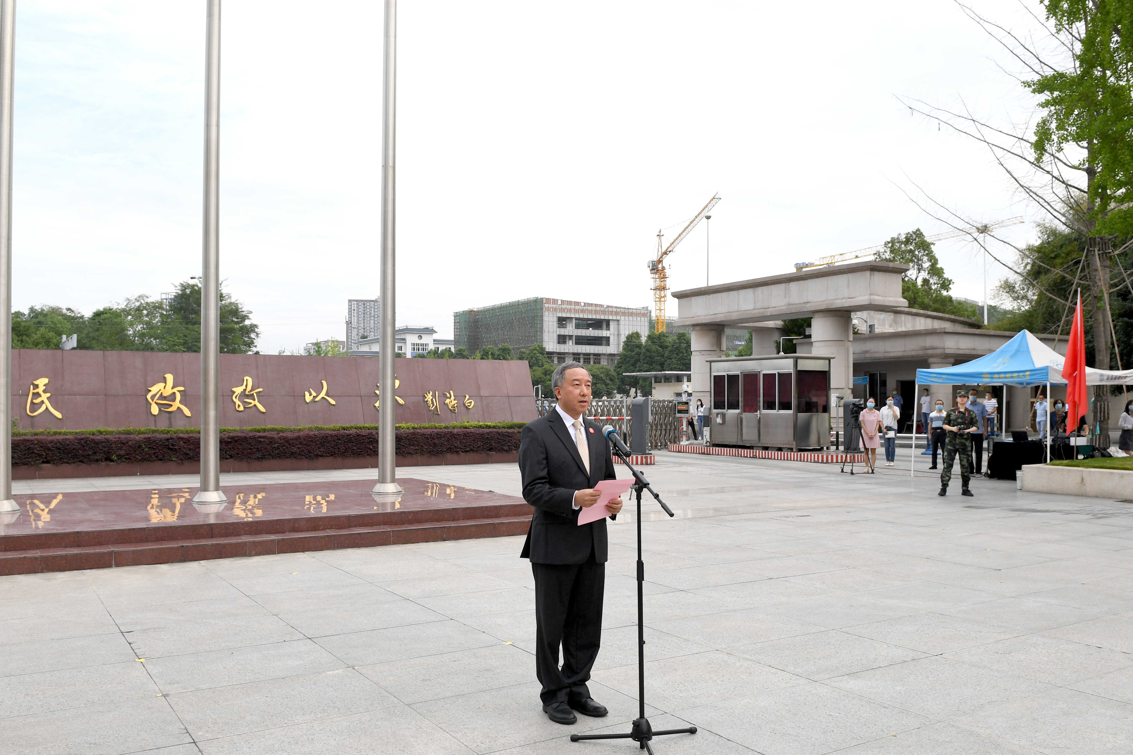 九五春秋砥砺奋进,百年风华逐梦一流。6月3日,迎着校庆日的第一缕晨光,必赢272net入口建校95周年校庆日升国旗仪式在柳林校区北大门广场举行,学校师生聚集在鲜艳的五星红旗下,共同为母校送上诚挚的生日祝福。党委书记赵德武出席仪式并讲话,校长、党委副书记卓志主持仪式,党委常委、常务副校长彭龙,党委副书记马骁、曾道荣,党委副书记、纪委书记范卫宏,党委常委、副校长欧兵、尹庆双、史代敏、张邦富、李永强,各职能教辅部门和学院(中心)主要负责人、教师代表和学生代表参加仪式。