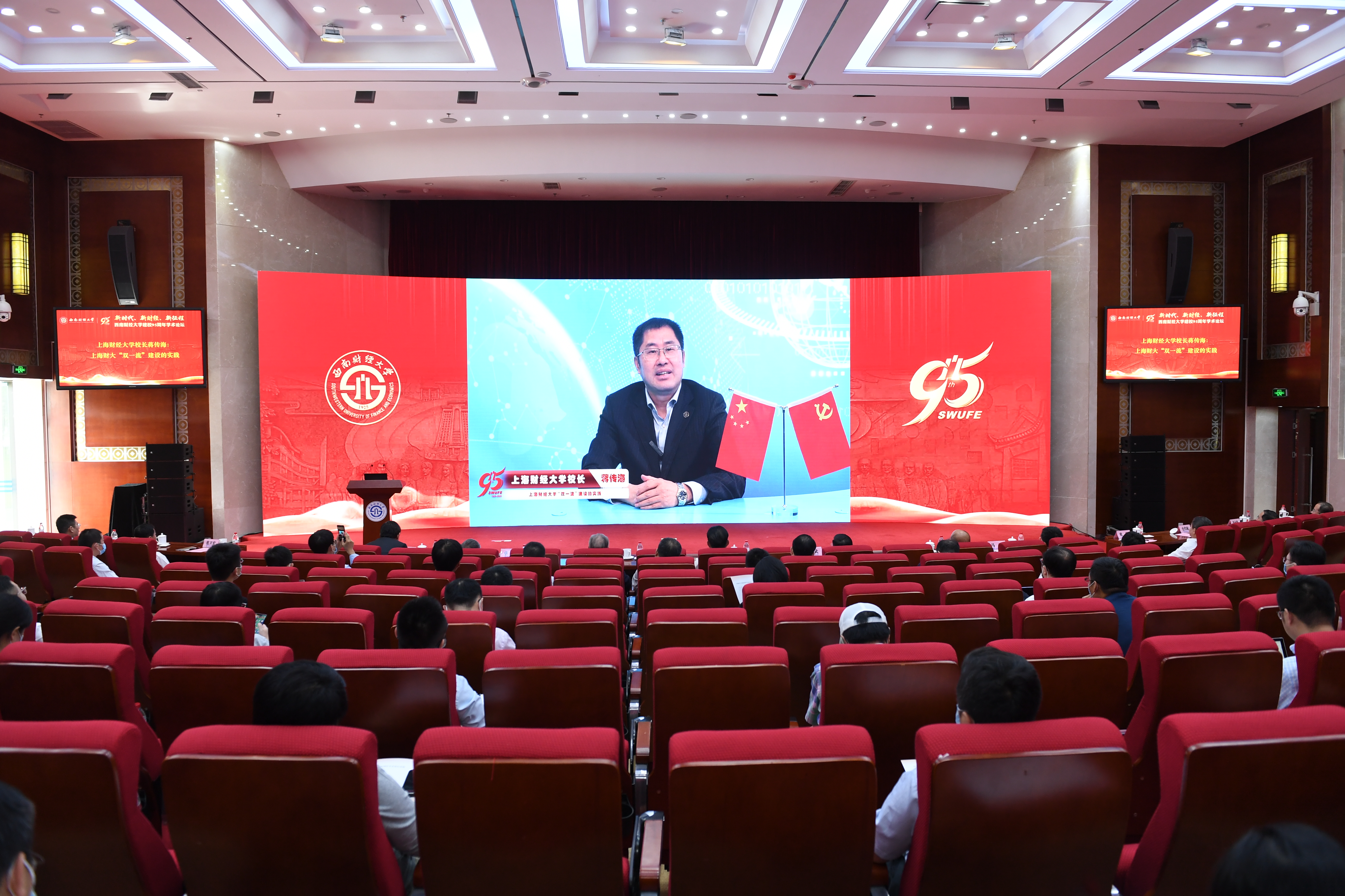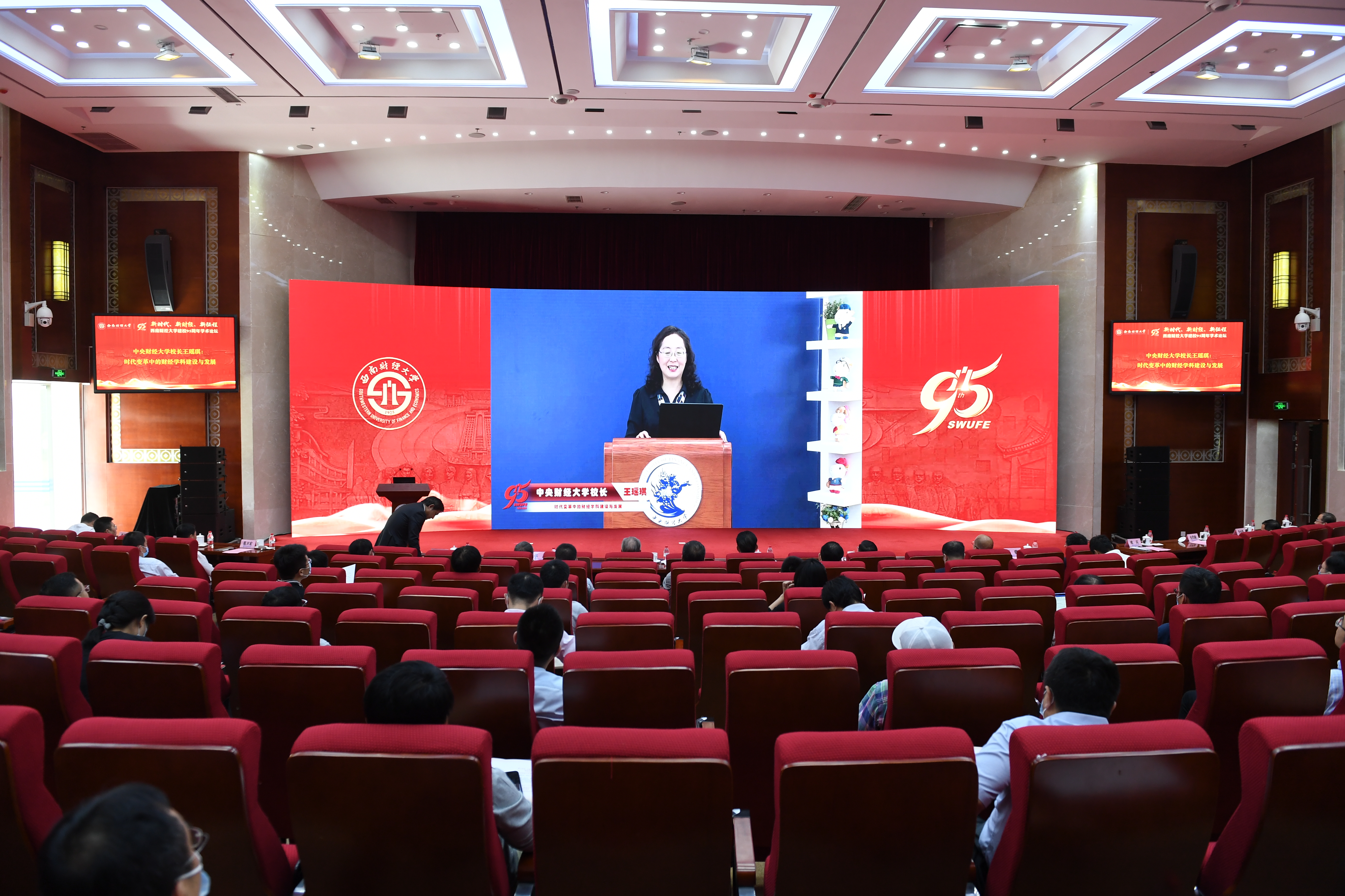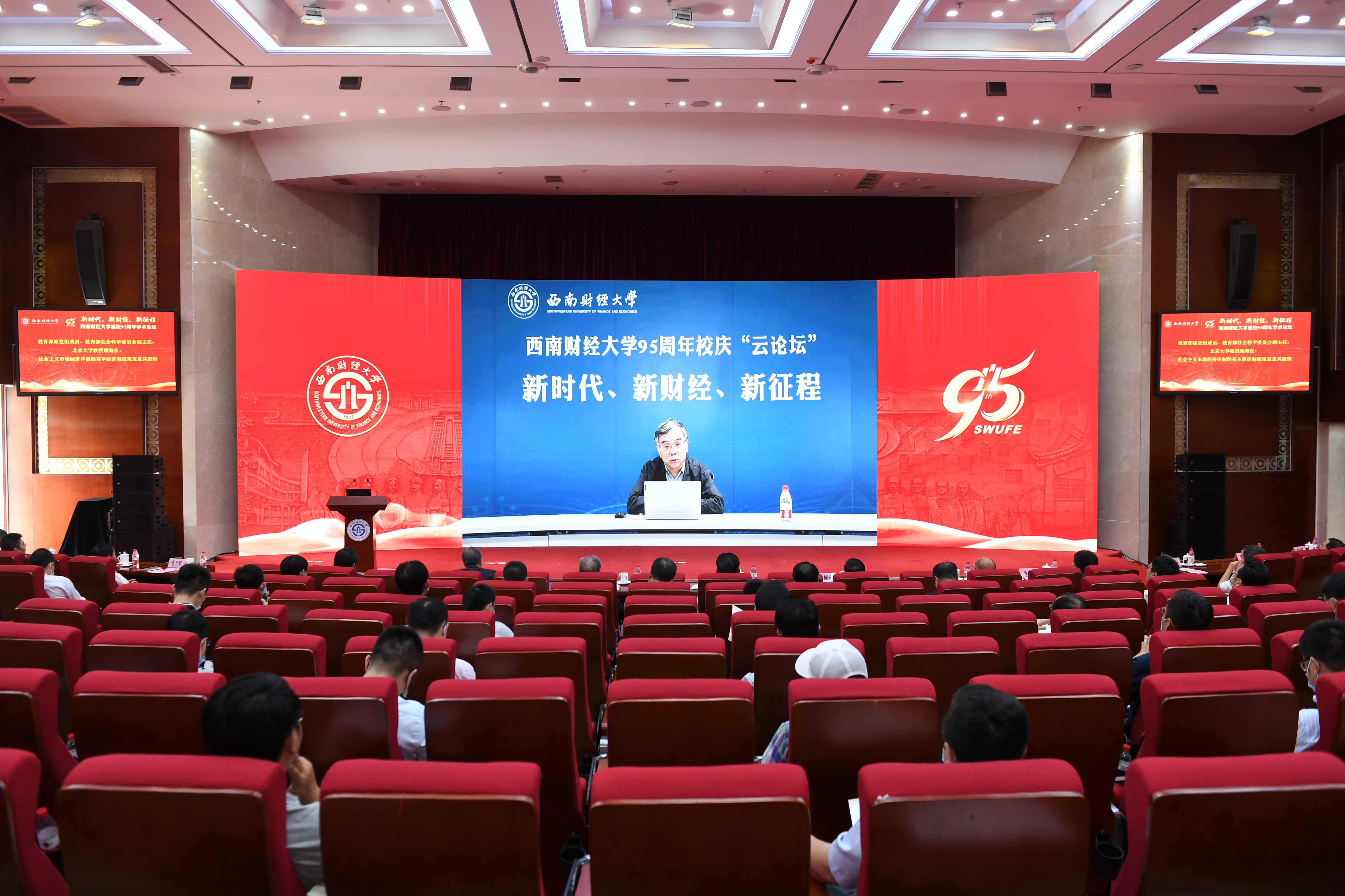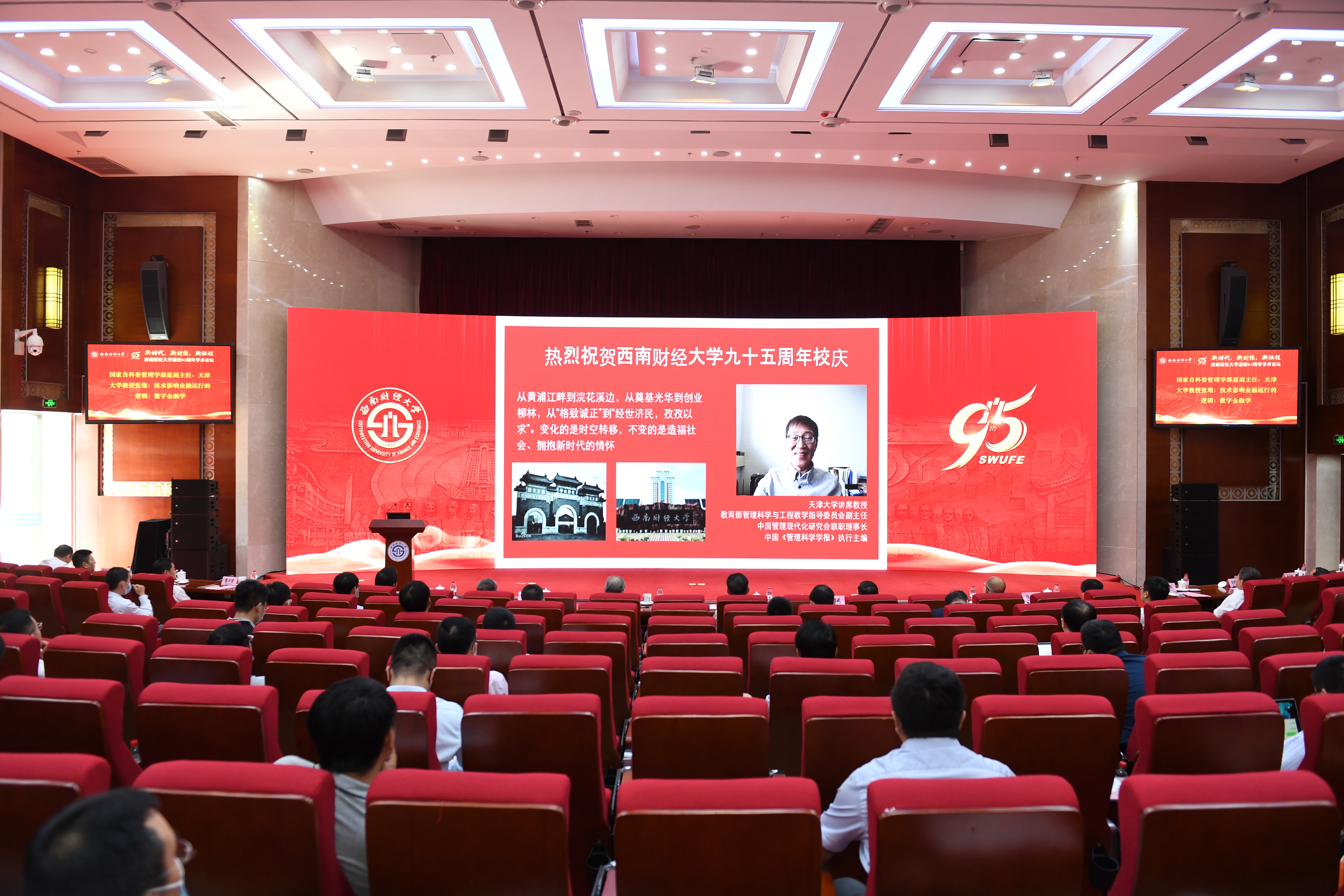 6月3日下午,学校在弘远楼105会议室隆重举行建校95周年学术论坛。教育部原党组成员、社科委副主任、北京大学顾海良教授,中国人民大学副校长刘元春教授,中央财经大学校长王瑶琪教授,上海财经大学校长蒋传海教授,国家自然科学基金委管理学部原副主任、天津大学张维教授,对外经济贸易大学原副校长、国家对外开放研究院执行院长林桂军教授,四川省政协原副主席解洪教授,必赢中国金融研究中心名誉主任曾康霖教授,成都市社科联主席、必赢成渝经济区发展研究院院长杨继瑞教授,学校领导班子全体成员、师生和校友代表等百余人参加论坛。党委书记赵德武致辞,校长、党委副书记卓志作主旨演讲。论坛以线上线下相结合的方式举行。