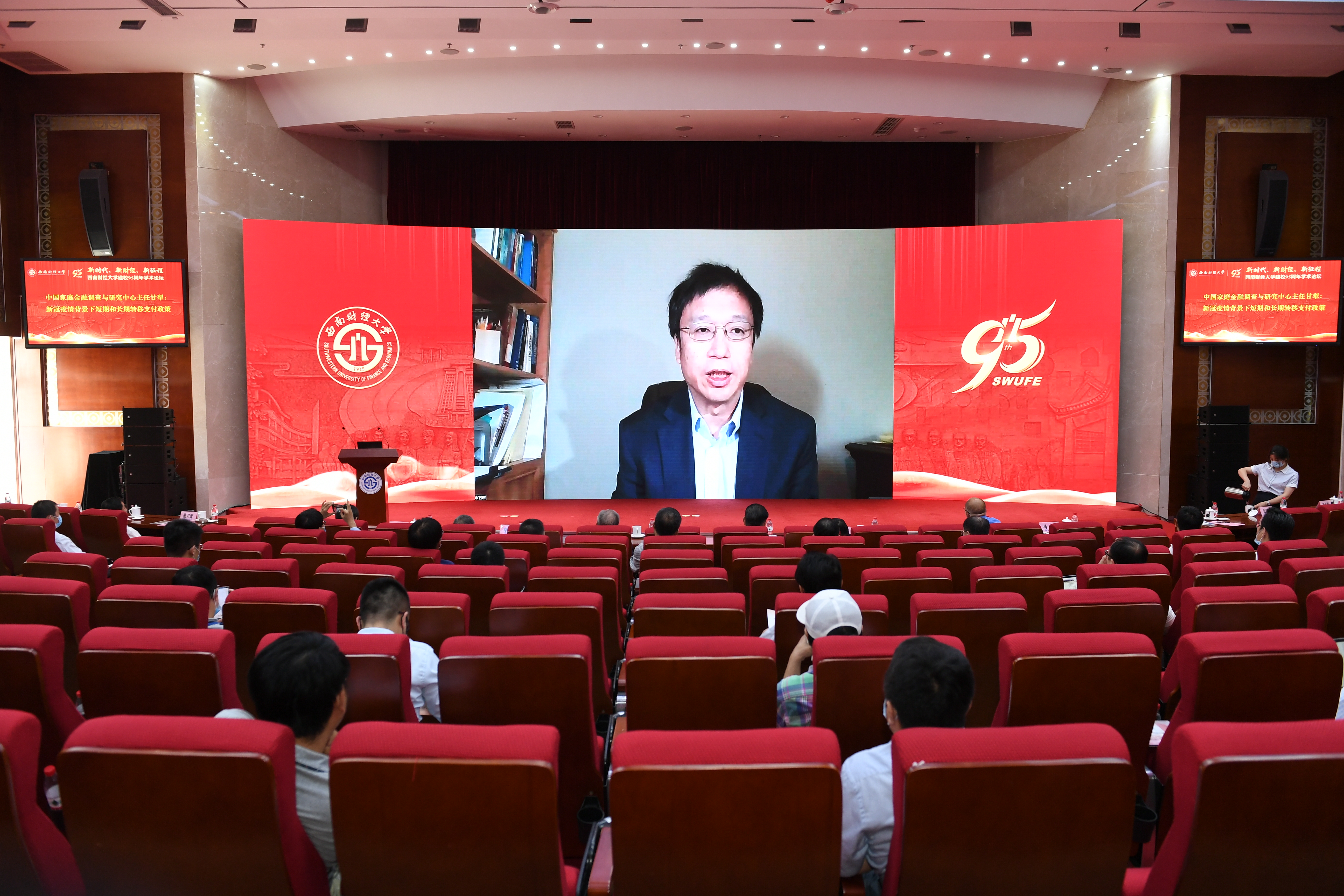 主题报告环节围绕“服务国家重大战略”展开,由学校党委常委、副校长尹庆双主持。聚焦“一带一路”、西部大开发、成渝双城经济圈等国家和区域重大战略,林桂军、解洪、杨继瑞、必赢中国家庭金融调查与研究中心主任甘犁分别做《“一带一路”建设》《新时代、新西部、新格局》《新型竞合机理:重塑“经济圈”川渝协调机制》《新冠疫情背景下短期和长期转移支付政策》的专题报告。