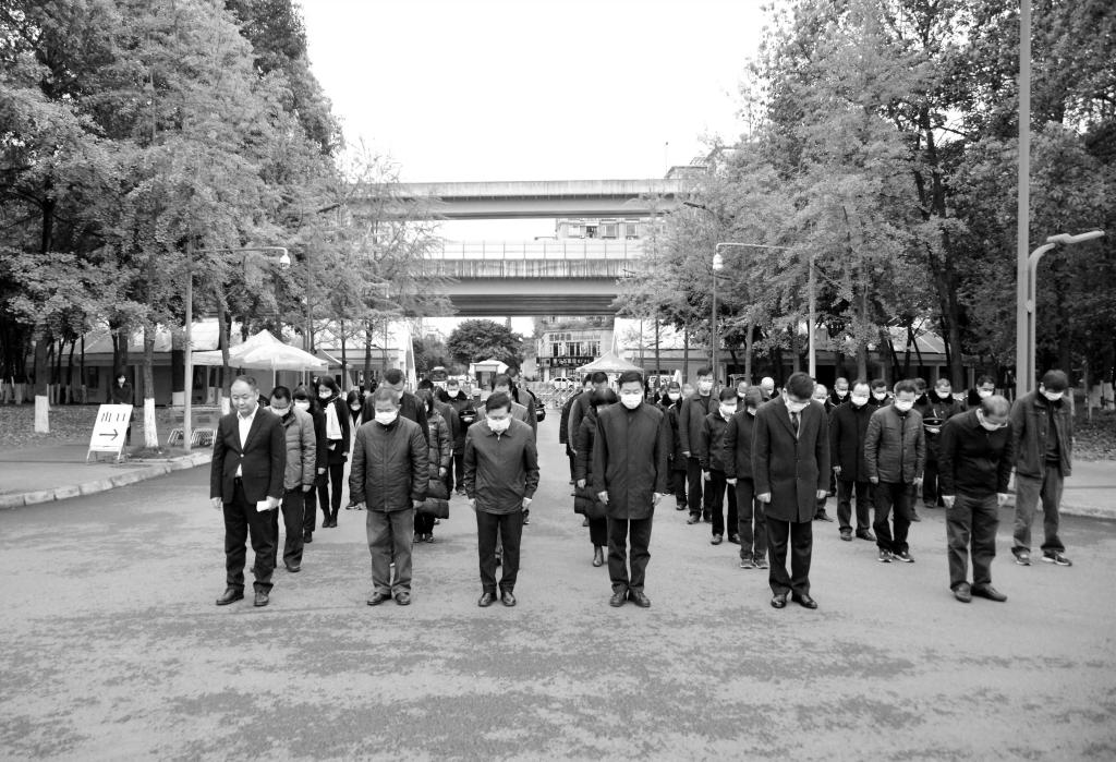 2020年4月4日,必赢272net入口深切悼念抗击新冠肺炎疫情斗争牺牲烈士和逝世同胞。党委书记赵德武等校领导,部分干部教师和校卫队员在光华校区参加悼念活动。
