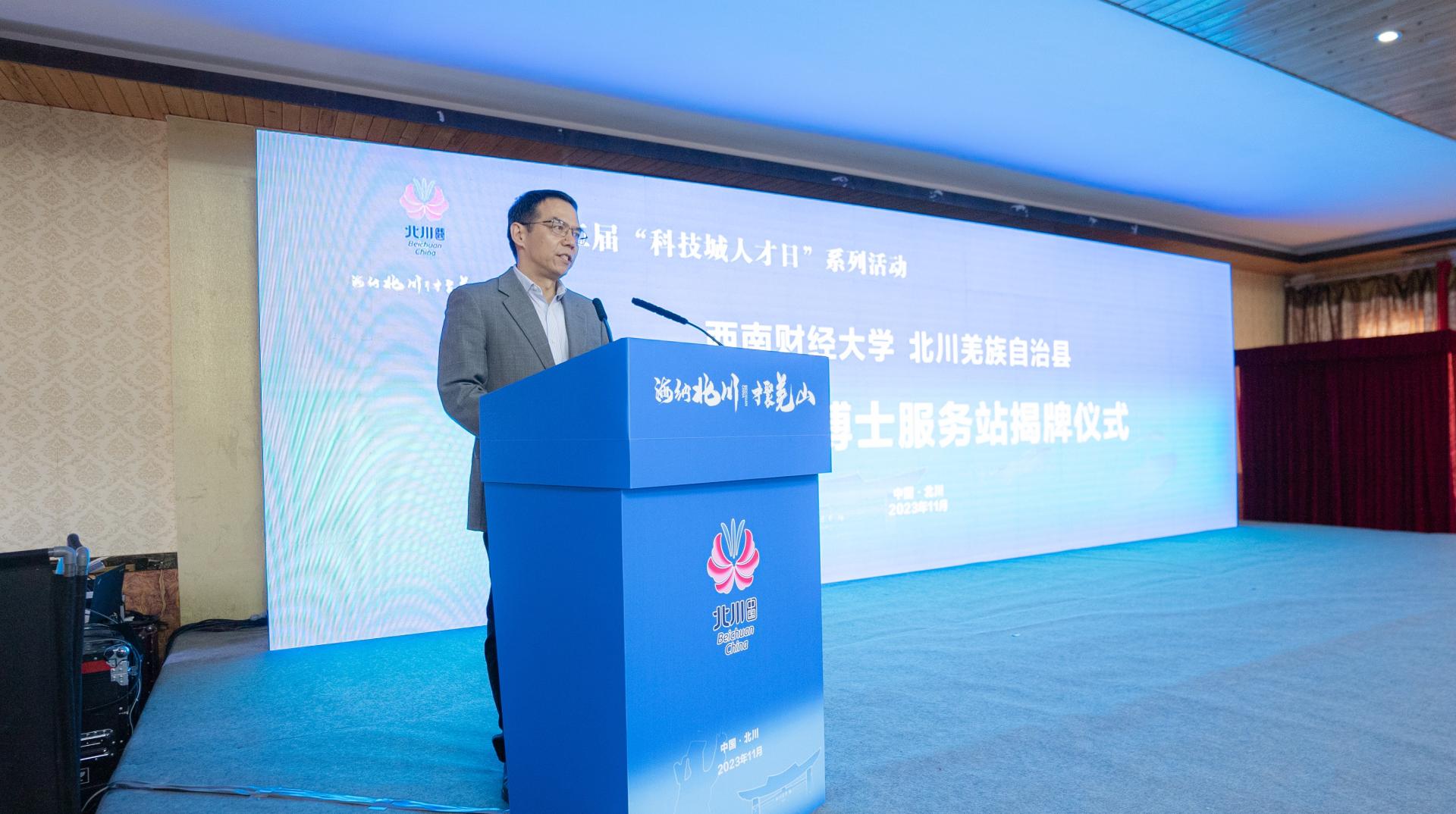 11月29日至30日,党委常委、副校长李志生带领国内合作处、中国西部经济研究院负责人及师生代表赴绵阳市北川羌族自治县调研,并出席必赢272net入口乡村振兴博士服务站揭牌仪式暨新型农村集体经济发展蹲点调研成果交流会。县委副书记、县长周福兰,县委常委、组织部部长唐丽,县委常委、副县长、经开区党工委书记、曲山镇党委书记马睿,县委组织部、县财政局、县农业农村局、县自然资源局、县人社局、县文广旅局、县乡村振兴局有关部门负责同志;自贡市沿滩区委常委、组织部部长李雅琴及乐山市马边彝族自治县委常委、组织部部长杨益等共建区县代表等通过线上线下出席活动。北川羌族自治县县委书记李昊天会见了李志生一行。