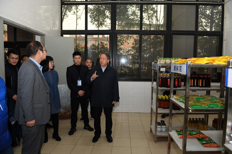 五谷堂是寒假期间柳林校区的值班食堂。卓志来到五谷堂后厨,在后勤服务总公司负责人陪同下,实地查看食品原材料库房、精加工操作间、烹饪操作间等运行情况,详细了解寒假期间食品供应和食品安全保障工作。他指出,长期以来,后勤管理服务工作按照“精细化、精准化、精益化”要求,服务保障能力不断提升,赢得师生高度认可。要科学合理搭配膳食,提供优质高效服务,创造舒适就餐环境,让留校师生既“暖胃”又“暖心”,度过一个欢乐、祥和的春节。