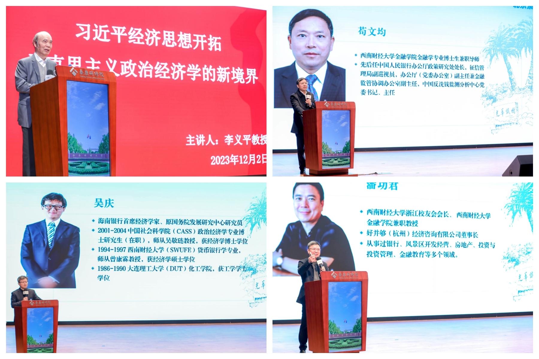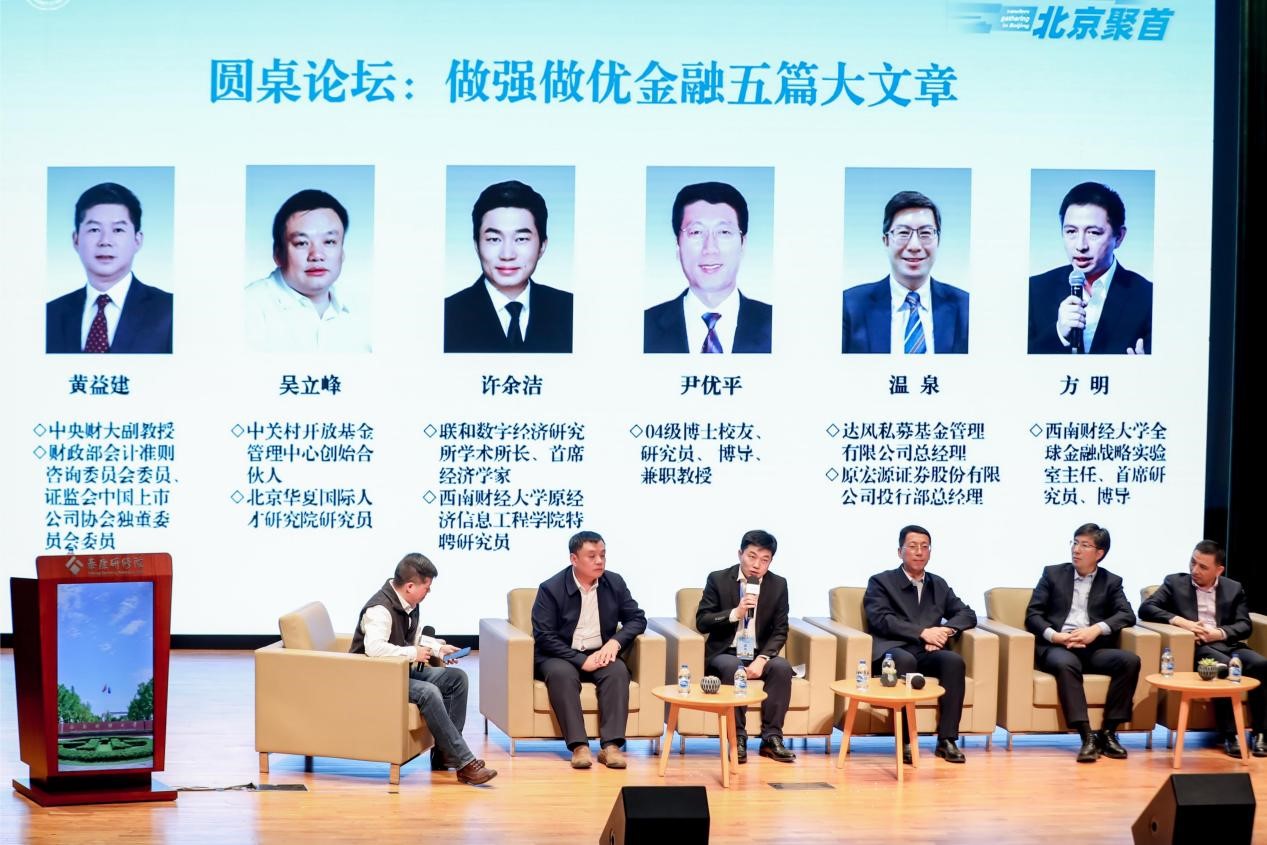 论坛围绕“金融强国,必赢校友何为”主题分主旨演讲和圆桌讨论两个部分进行。李义平、潘功君、吴庆、方明、温泉、黄益建、吴立峰、许余洁等专家学者和校友,围绕深入学习贯彻习近平经济思想、深刻认识当前宏观经济形势、共同富裕、深入领会中央金融工作会议精神实质、写好金融“五篇大文章”等话题进行了分享、交流和讨论,为在座校友们带来了一次高质量的学术享受和思想启迪。习近平经济思想研究院(一流学科培优集成创新平台)和数字经济与交叉科学创新研究院(财经科技集成创新平台)相关负责人分别介绍了两个平台的具体建设情况并向校友们发出交流合作的邀请。