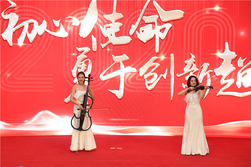 期间,精彩纷呈的文艺表演为团拜会增添了浓郁的新春气息。开场表演《追梦起航》以磅礴激昂的电提琴合奏迅速营造现场热烈欢快的节日氛围,飘逸轻盈的群舞《傲雪寒梅》描画出冬日红梅的灵动舒展,歌舞表演《我们都是追梦人》展现了新必赢人勇敢追梦、奋力拼搏的朝气热忱,深情动人的独唱《我和我的祖国》燃起全场师生炙热的爱国激情。一场场年味十足的表演赢得在场师生阵阵喝彩,现场成为一片喜庆祥和的欢乐海洋。