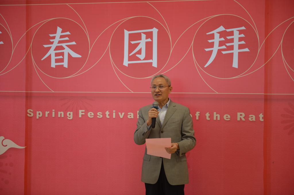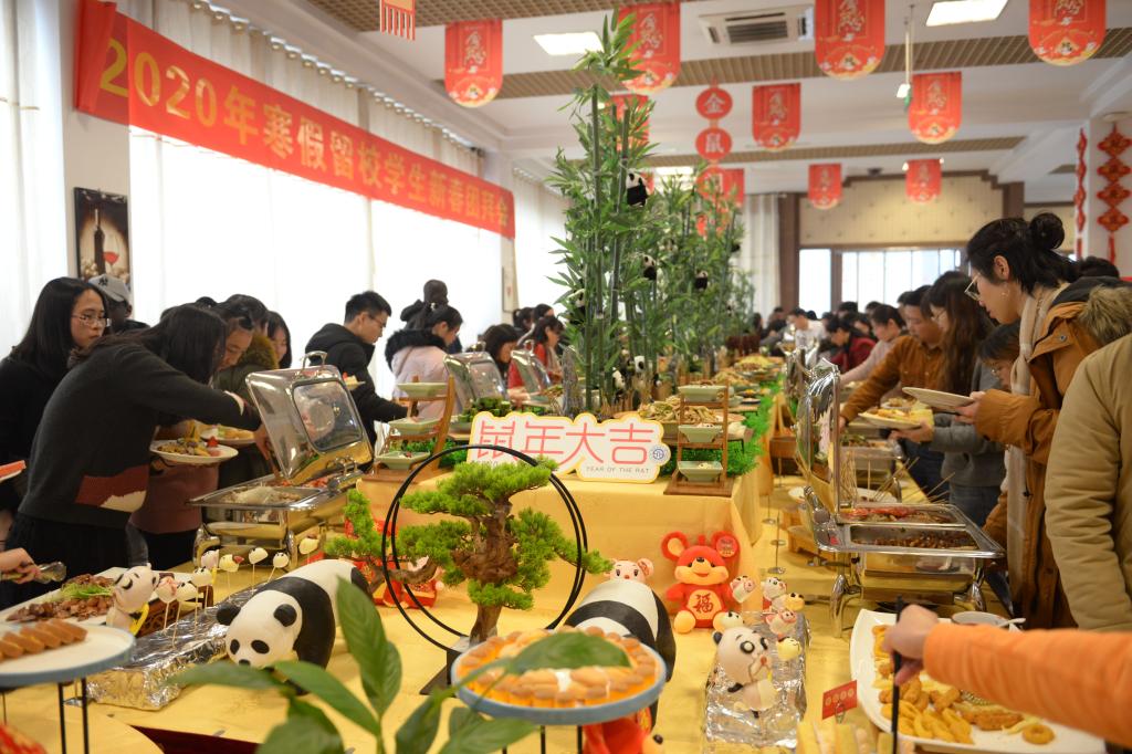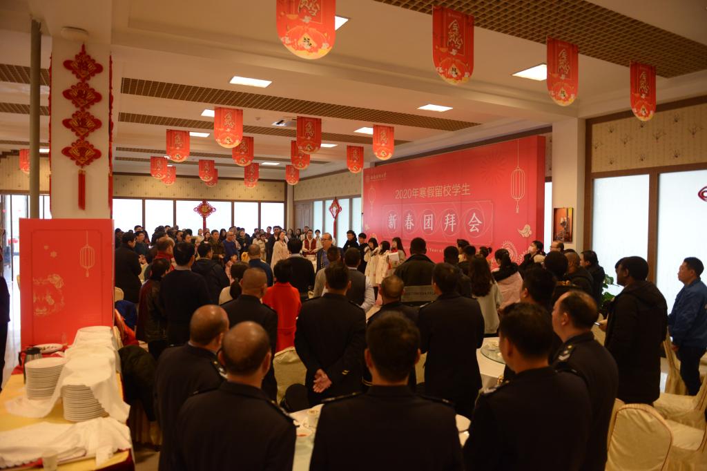金猪辞旧日,祥鼠添新岁。1月22日中午,柳林校区柳园食府喜气洋洋、暖意如家,2020年寒假留校学生新春团拜会在欢乐祥和的气氛中举行。党委书记赵德武、党委副书记曾道荣、党委常委副校长欧兵,相关职能部门和各学院(中心)负责人与近300多名寒假留校同学欢聚一堂,喜迎新春佳节。