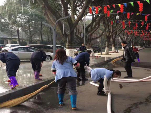 全面实施卫生消毒,净化环境。成立校园环境卫生综合治理专项工作组,全面启动校园环境卫生整体改善行动,加快实施两校区环境卫生消毒。对校门、食堂、学生公寓、家属区单元走道、校园主干道、垃圾场、菜市场等重点区域全面消毒,确保每天不少于两次,努力做到环境卫生不留死角,清洁消毒不留空白。