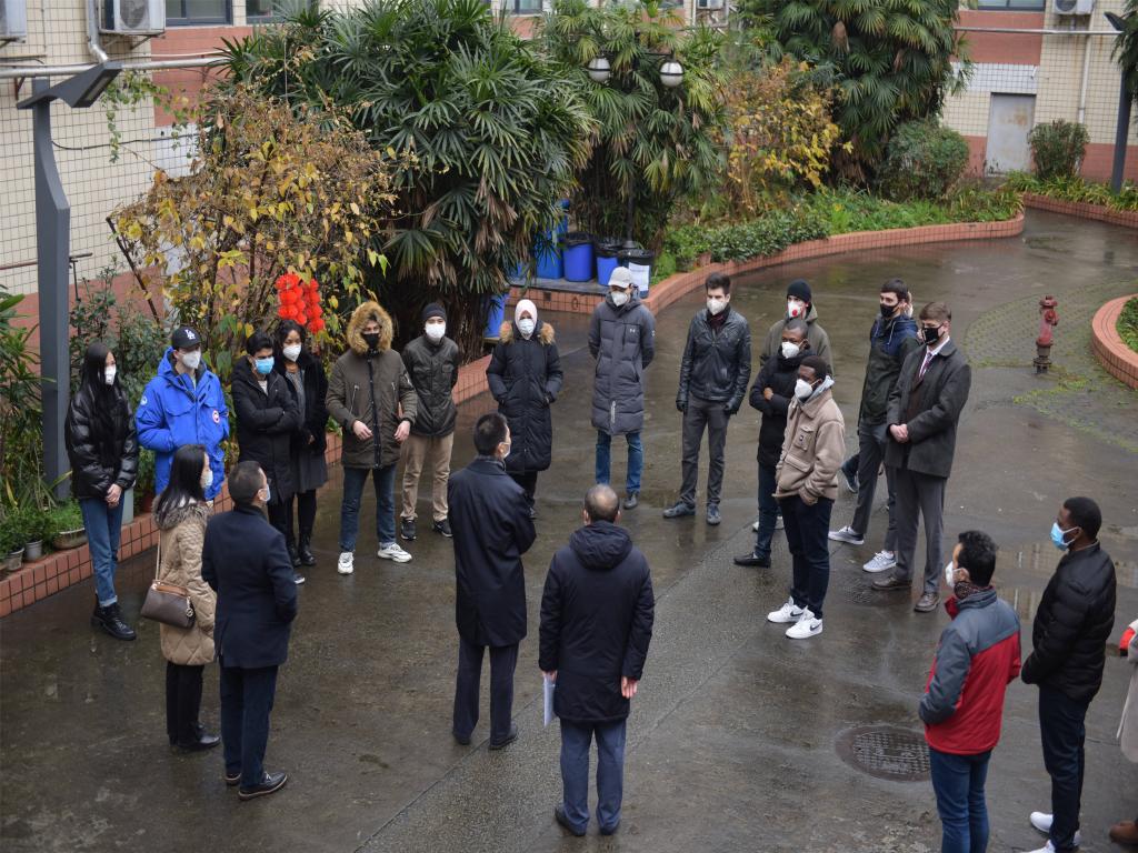 2月2日上午,成都市人民政府牛清报副市长来必赢光华校区看望在校留学生并视察学校疫情防控工作。成都市委外办机关党委书记欧玉松、外办领事处副处长胡鑫参加视察。学校党委副书记曾道荣,党委常委、副校长李永强陪同视察。