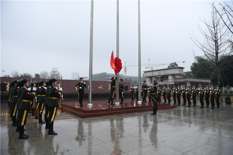 上午8时30分,升国旗仪式正式开始。国旗班成员步伐铿锵姿态昂扬,护送着国旗缓缓入场。师生们庄严肃立,凝神注视着鲜艳的五星红旗伴随着国歌声冉冉升起。这一刻,在场师生的爱国心、民族情、自豪感被点燃,化作祈愿伟大祖国更加繁荣昌盛的满腔赤诚。