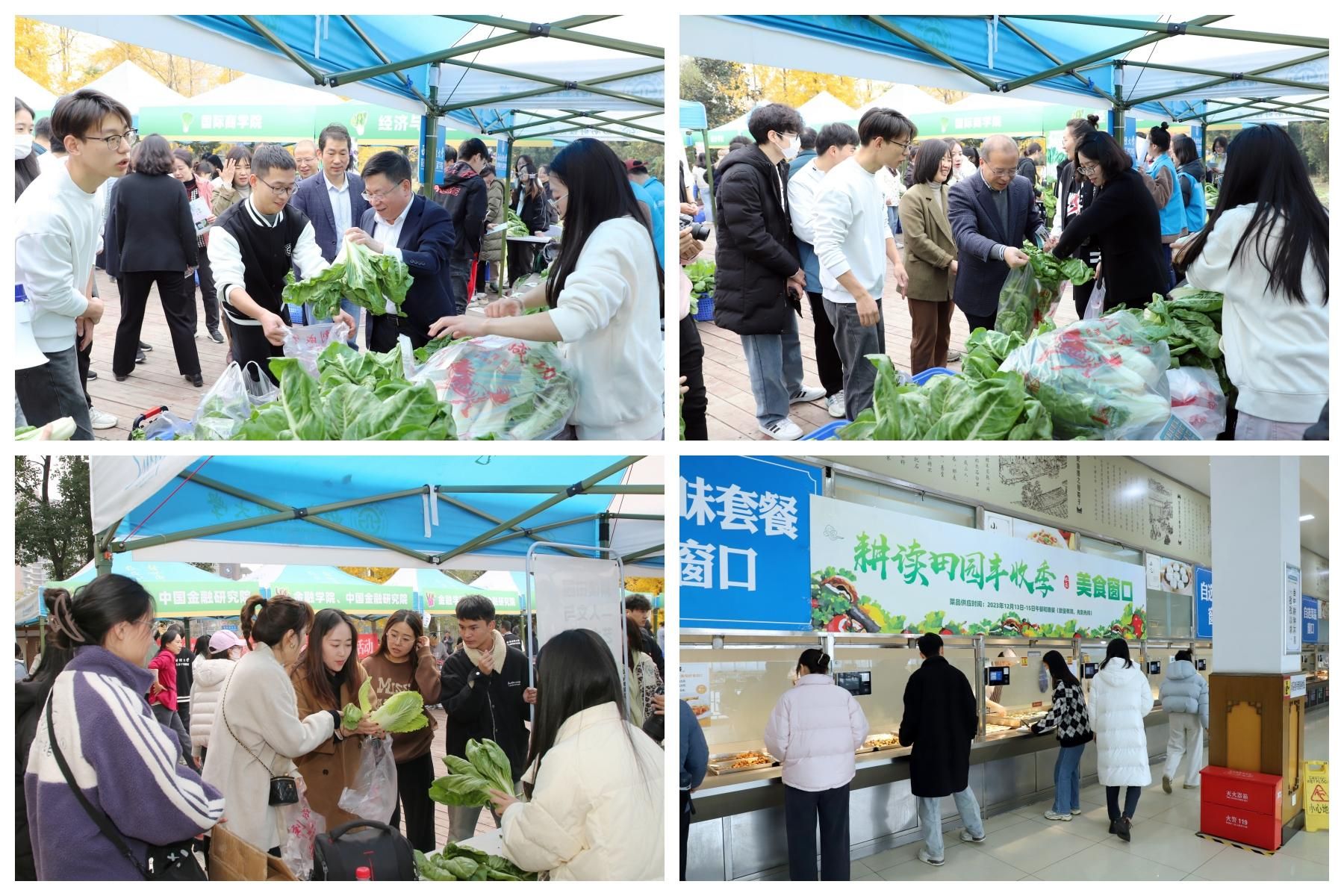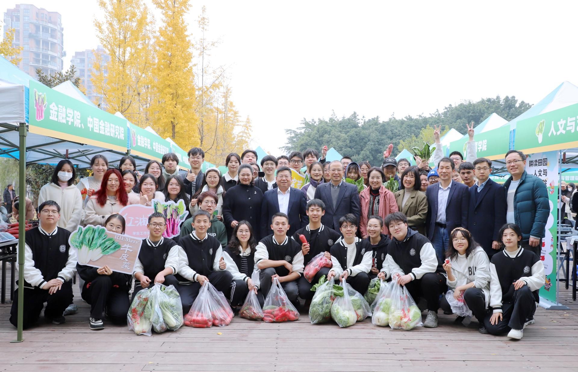 劳动至美乐享丰收成果。“优质大白菜,美味又健康……”“新鲜牛皮菜,绿色有机无公害……”采摘结束后,“SWUFE劳动集市”开市,同学们的“叫卖声”此起彼伏,20个学院(研究院)的师生参与了蔬菜售卖活动。